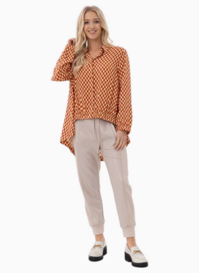 - Bold rust and white geometric print adds contemporary colour to the Shirts & Blouses collection