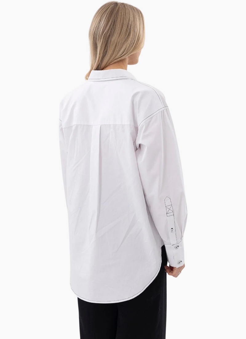 Introducing the Riche Shirt White from Mi Moso. This timeless white shirt offers an elevated, relaxed silhouette with crisp tailoring and thoughtful details.