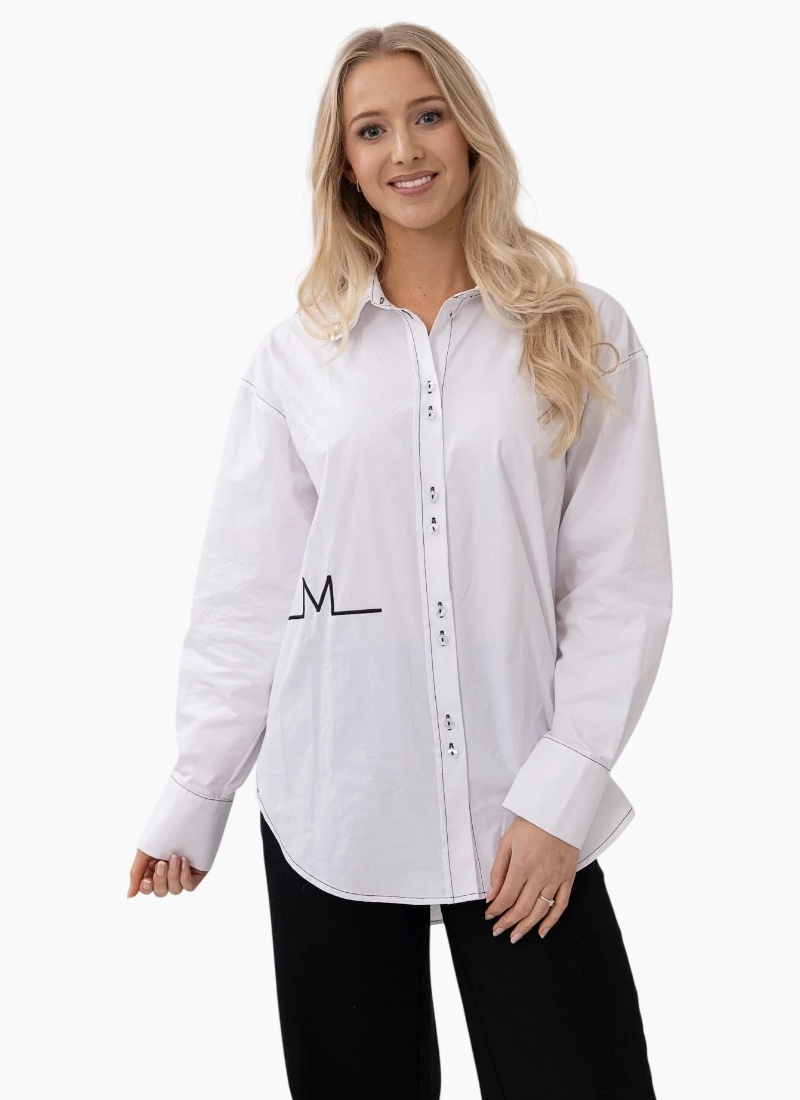 - A refined addition to the Women Tops (Shirts & Blouses) edit — in a fresh white colour and premium cotton material