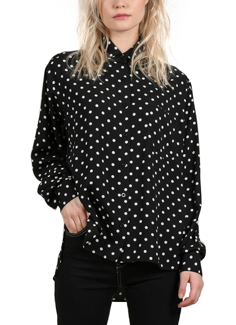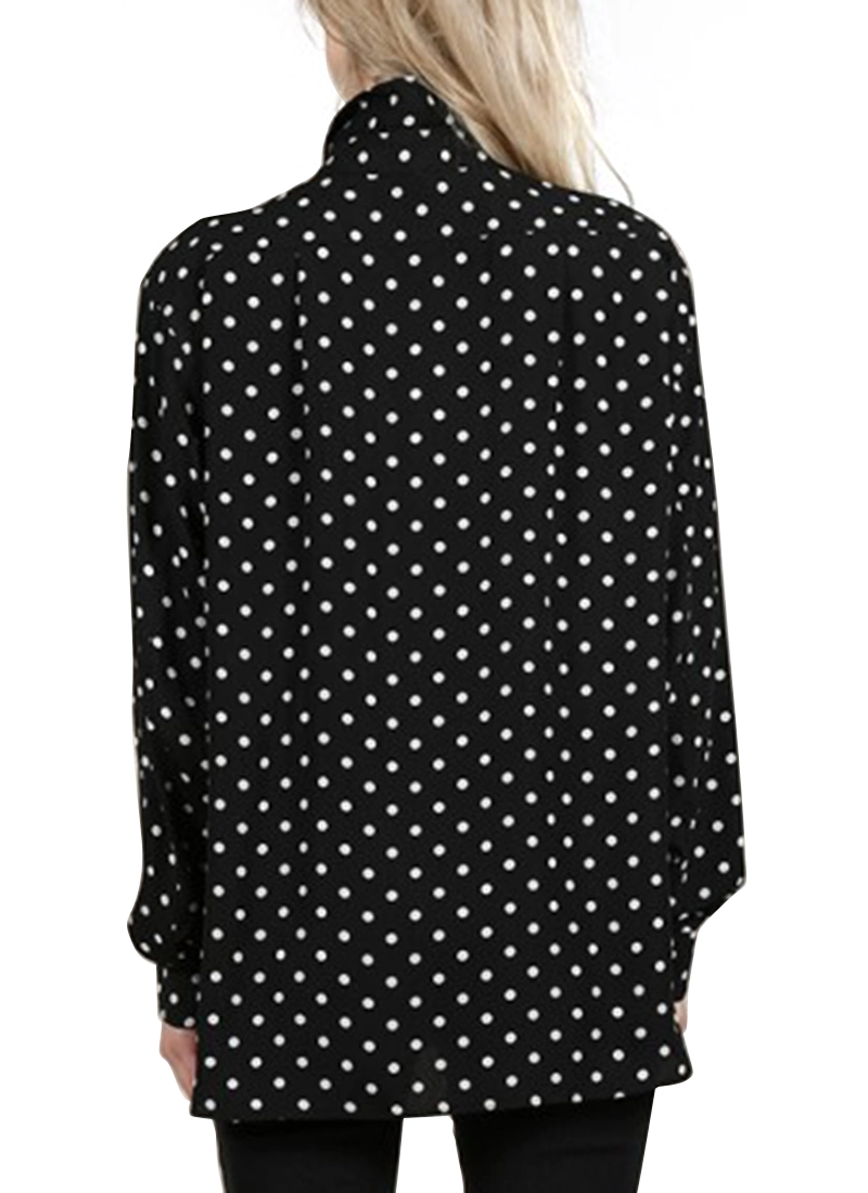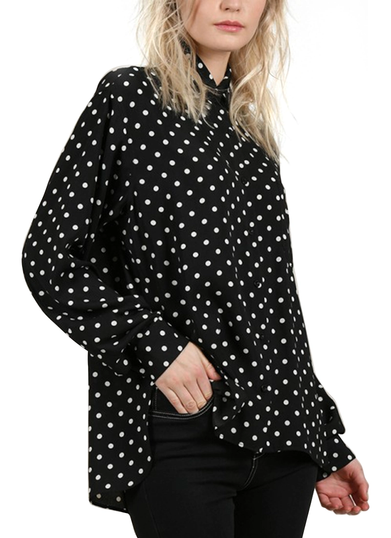 Polka Dot Printed Women's Shirt, Straight Fit, Long Sleeve.