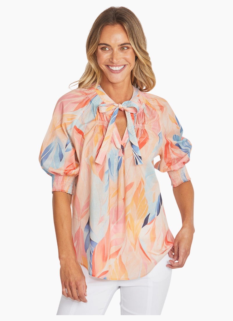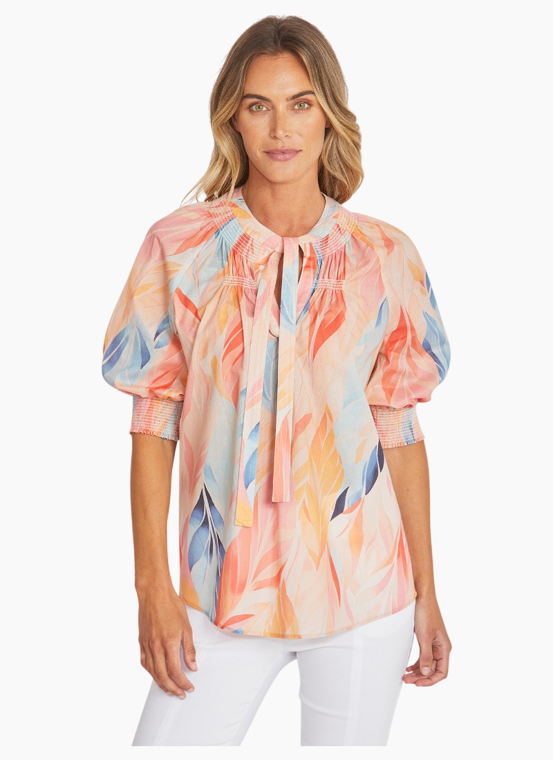 Introducing the Cressida Top from Ping Pong. This stunning piece features a beautiful floral design that adds a touch of elegance to any outfit.