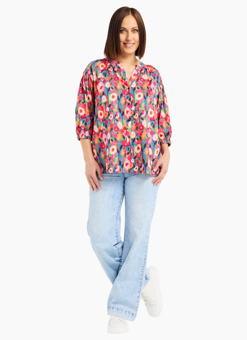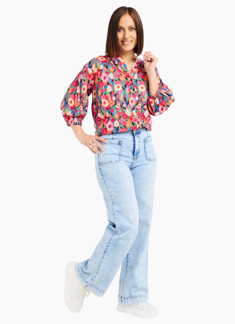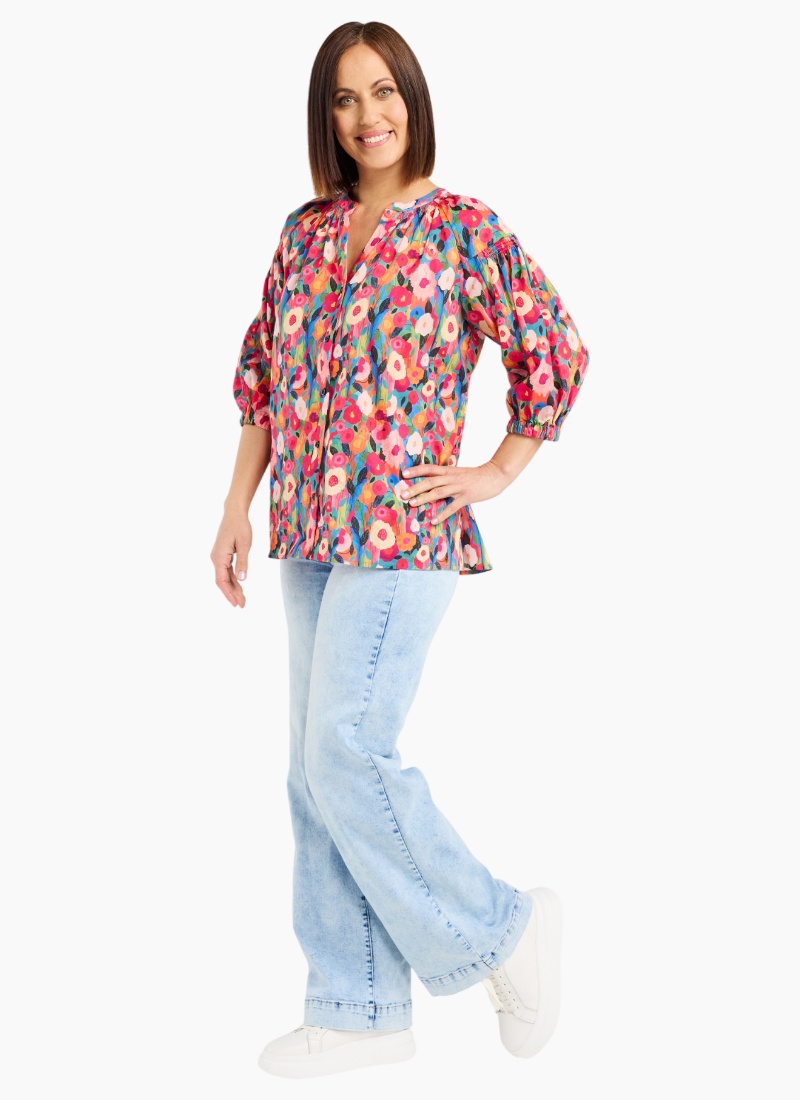 Introducing the Evie Top from Seduce. This vibrant floral blouse brings joyful colour and breezy comfort to your wardrobe.