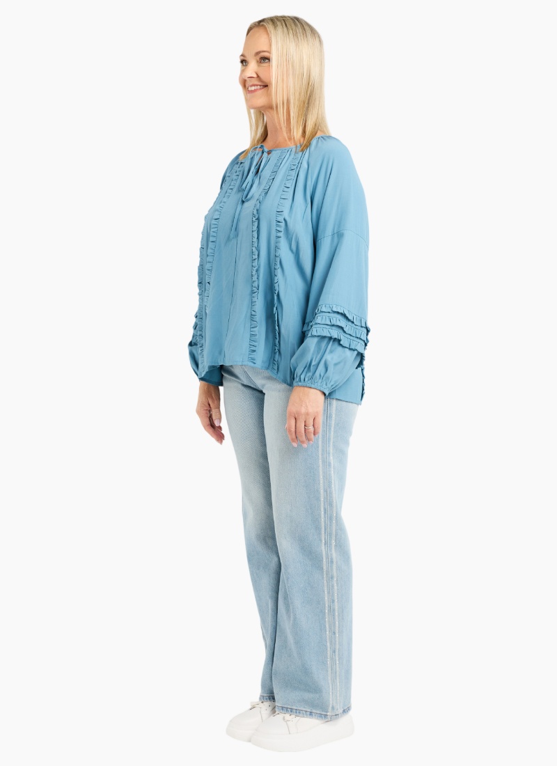 Introducing the Josephine Top-Blue from Seduce. A breezy, feminine blouse that lifts everyday dressing with thoughtful detailing and a soft sky blue colour.