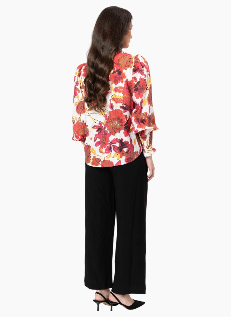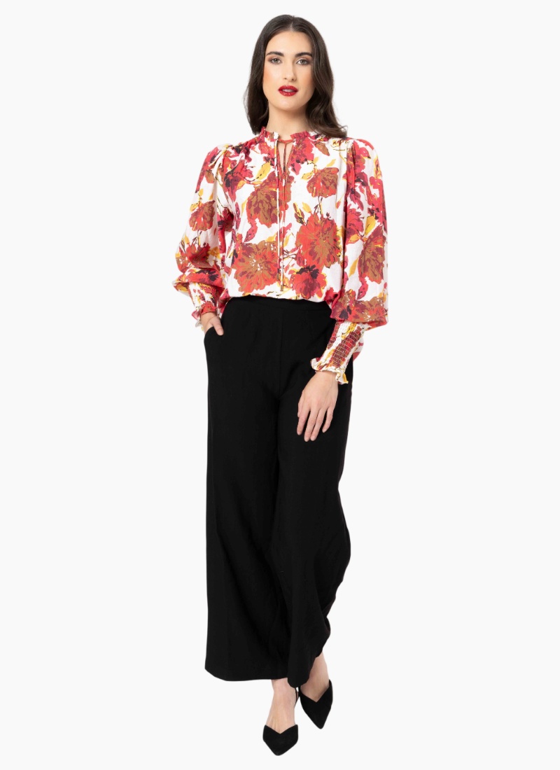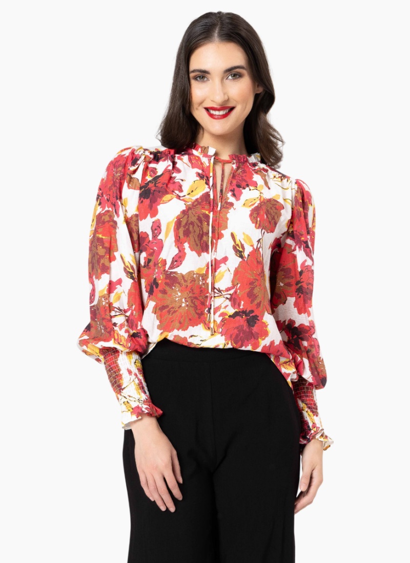 Step into the new season in style with the beautiful Byron Blouse in Winery Print by Seeking Lola. It’s been designed in a stunning vintage-inspired red, mustard, and brown floral print. Features a drawstring ruffled neckline and long blouson sleeves with a wide shirred cuff. This blouse would look perfect paired with high-waisted tailored pants.Viscose, Nylon, Linen Blend Drawstring Ruffled Neckline Blouson Sleeves Shirred Cuffs Longline Hem Care Instructions: Cold hand wash with similar colours. Do not soak. Do not bleach. Dry without delay in the shade. Do not tumble dry. Cool iron on the reverse side. Dry cleanable.