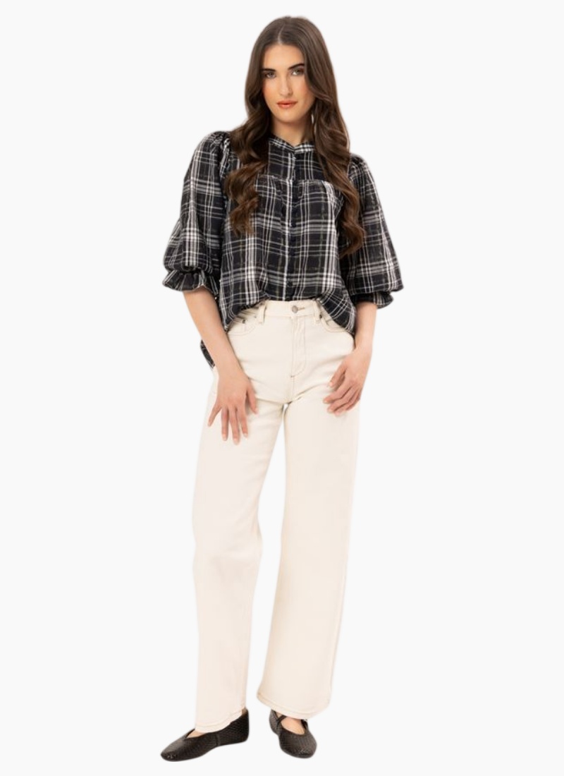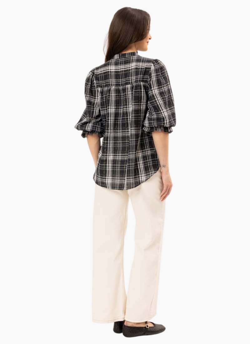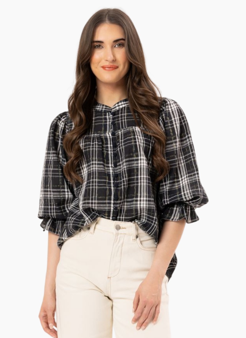 Introducing the CELIA BLOUSE-BLUE CHECK from Seeking Lola. This effortless blouse brings a timeless checked motif to your wardrobe with a softly structured, wearable silhouette.