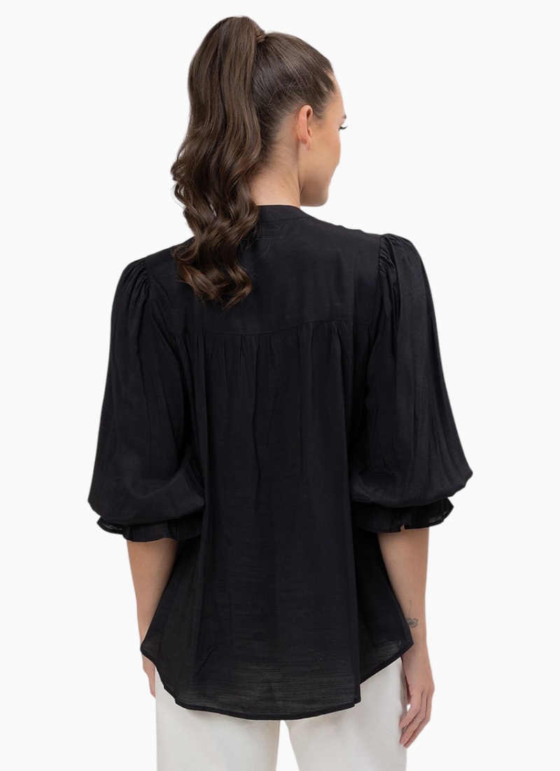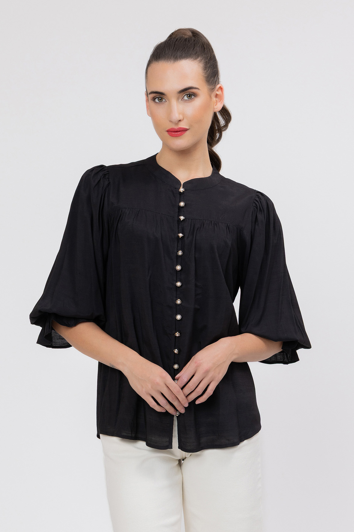 Shake up your professional wardrobe with a desk-to-dinner button-up boasting adorably puffed sleeves.