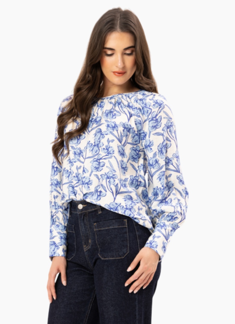This feminine print top will look great with both trousers, jeans, and a skirt.