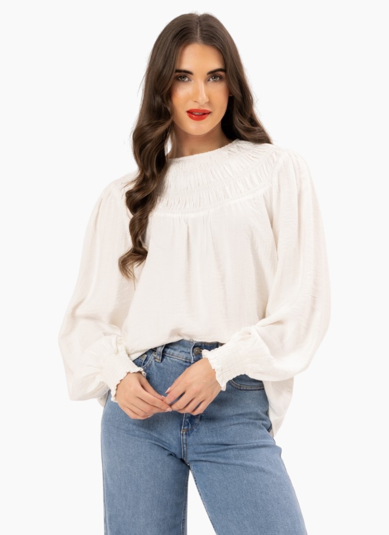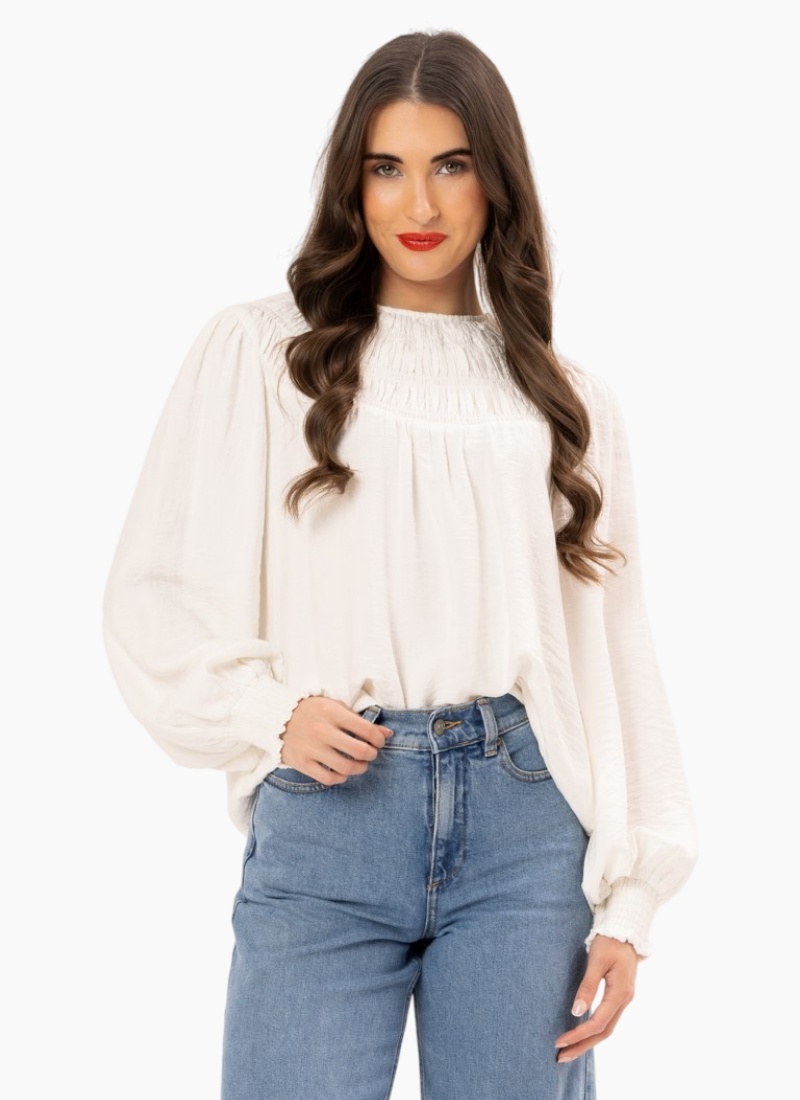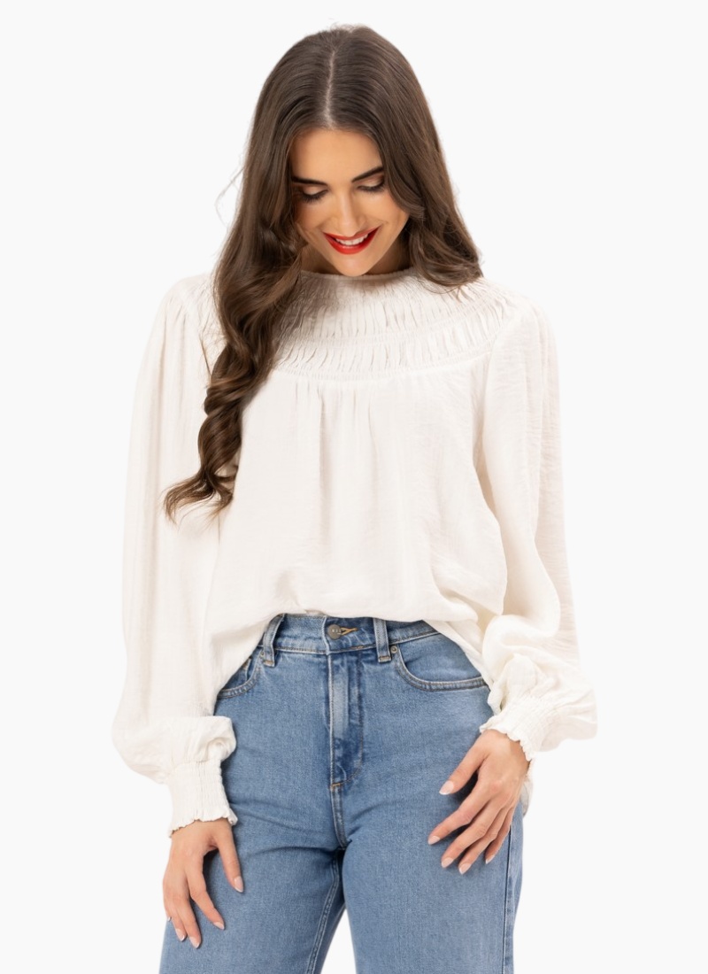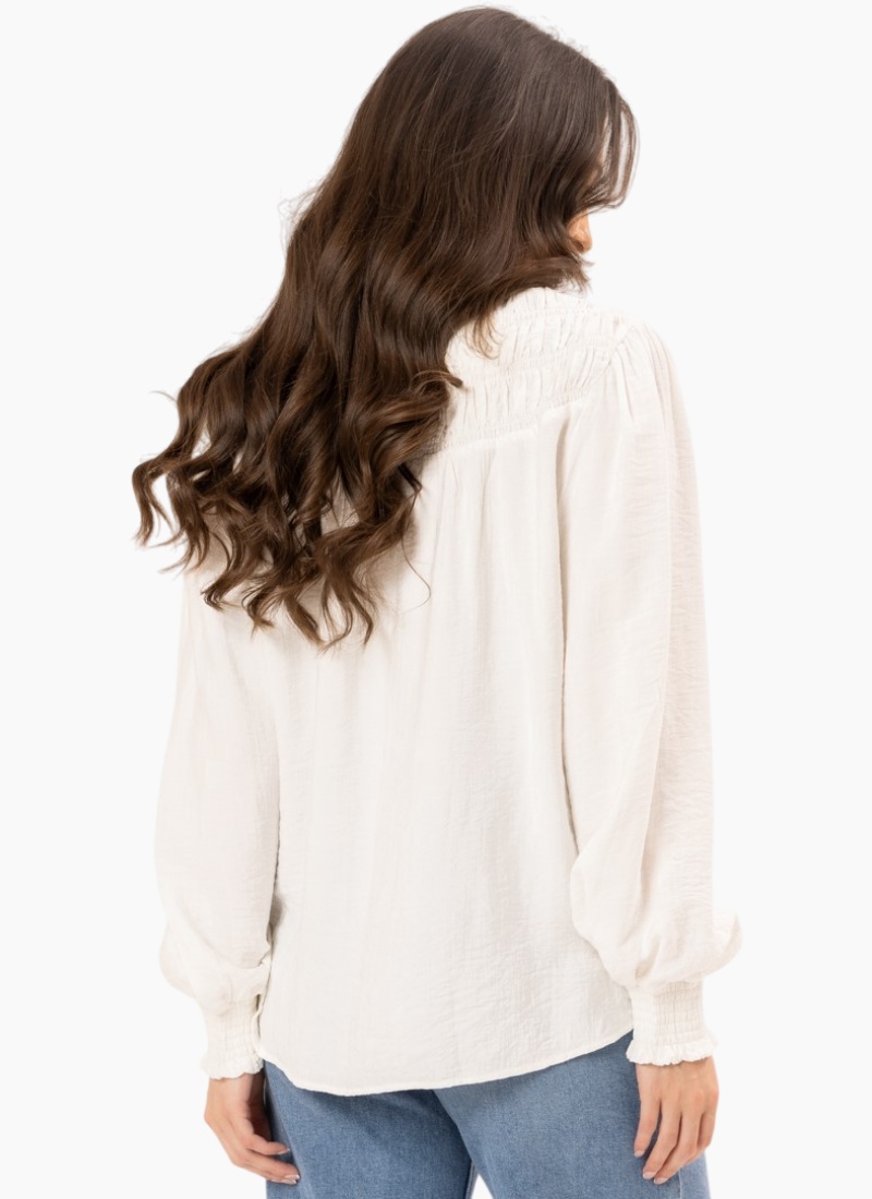 A smocked yoke adds just the right amount of texture to this pretty shirt that's sure to be an everyday favorite.