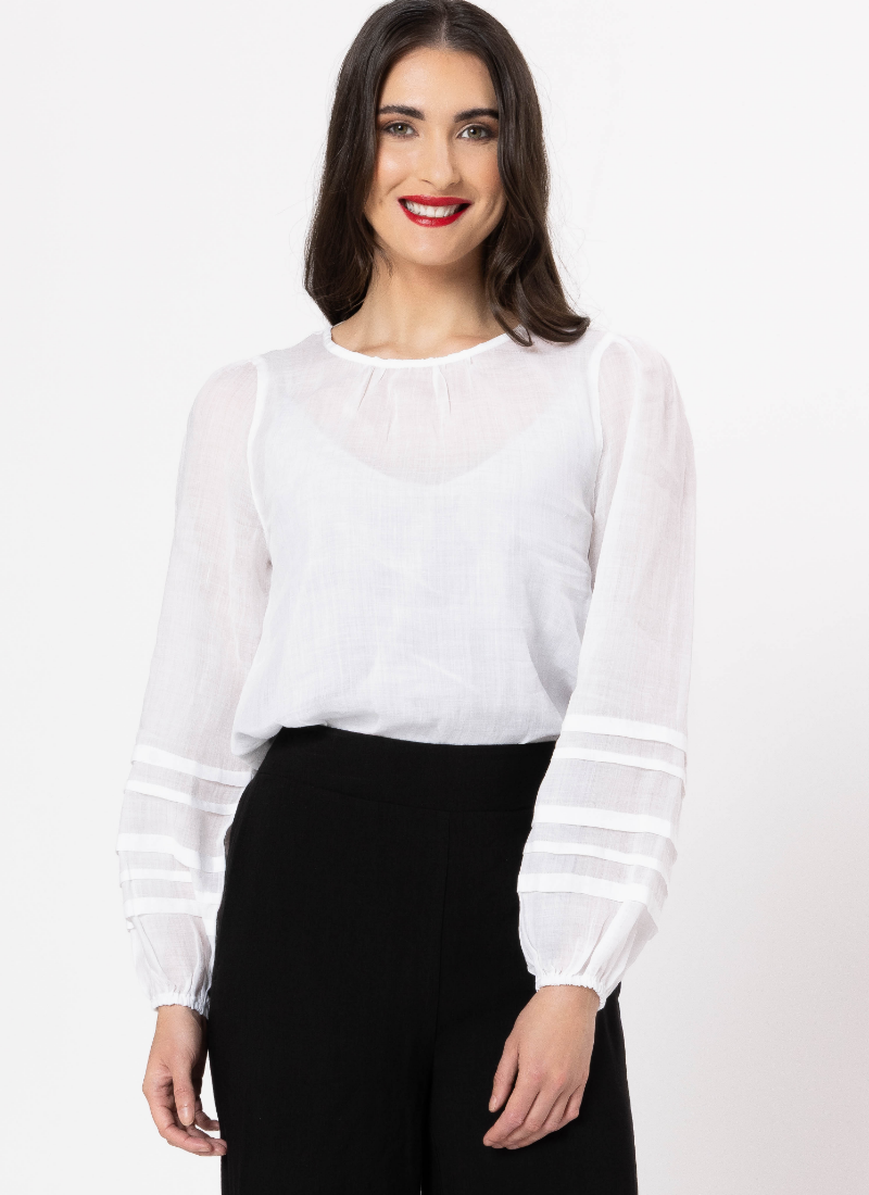 Effortlessly elegant, this timeless blouse offers a flattering fit and versatile design with pintucks detail making it your go-to piece for any occasion.