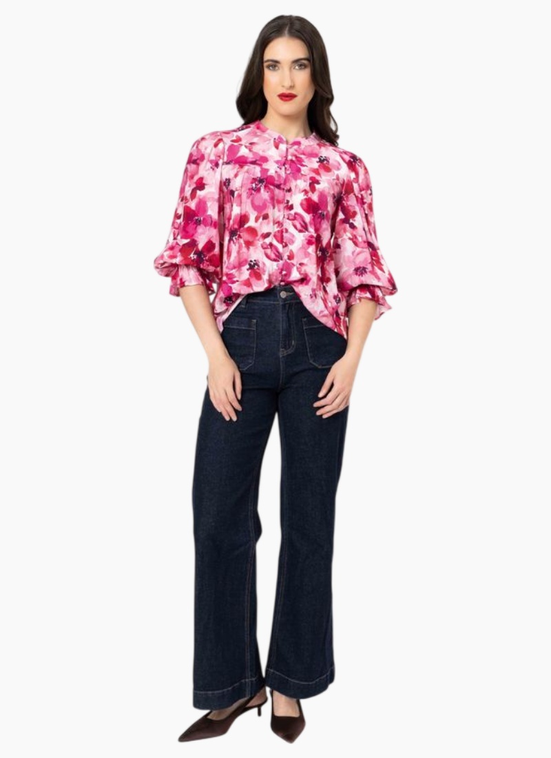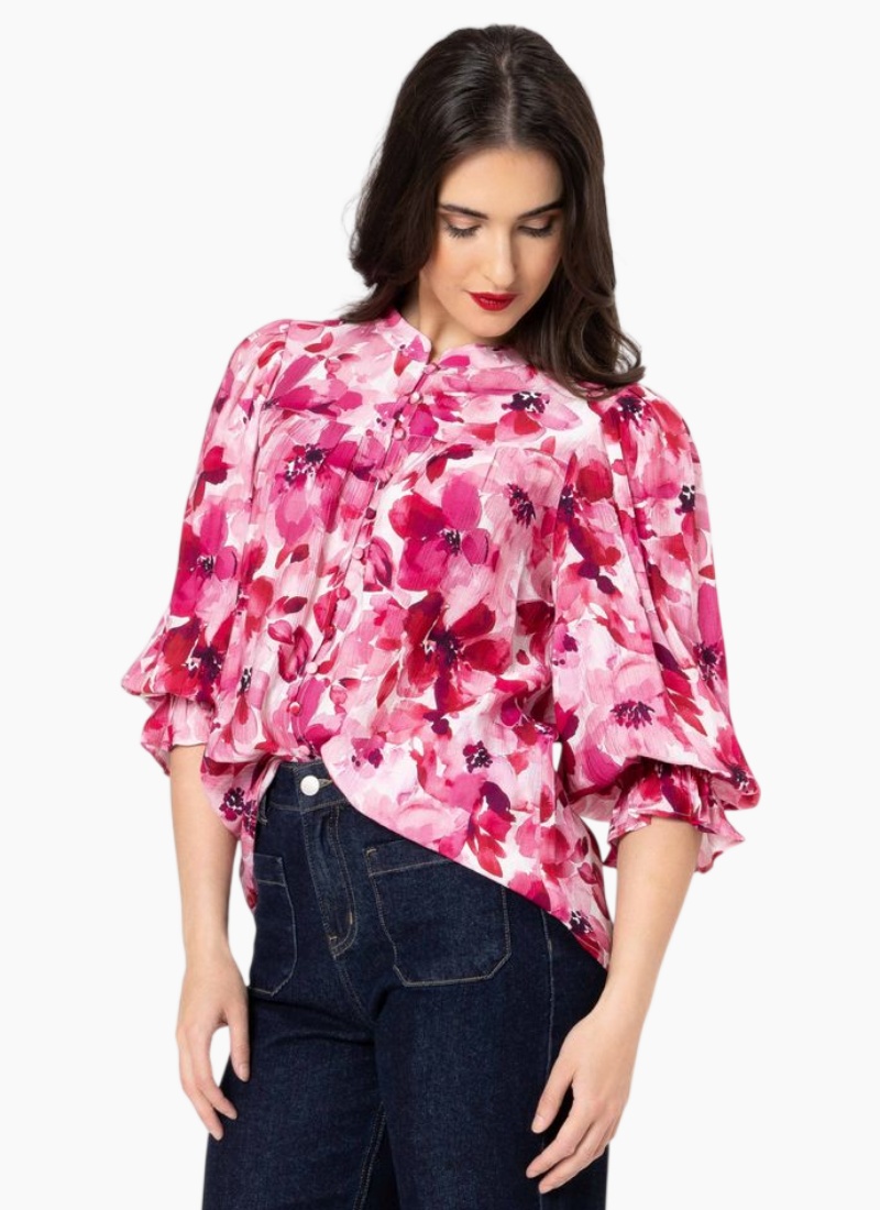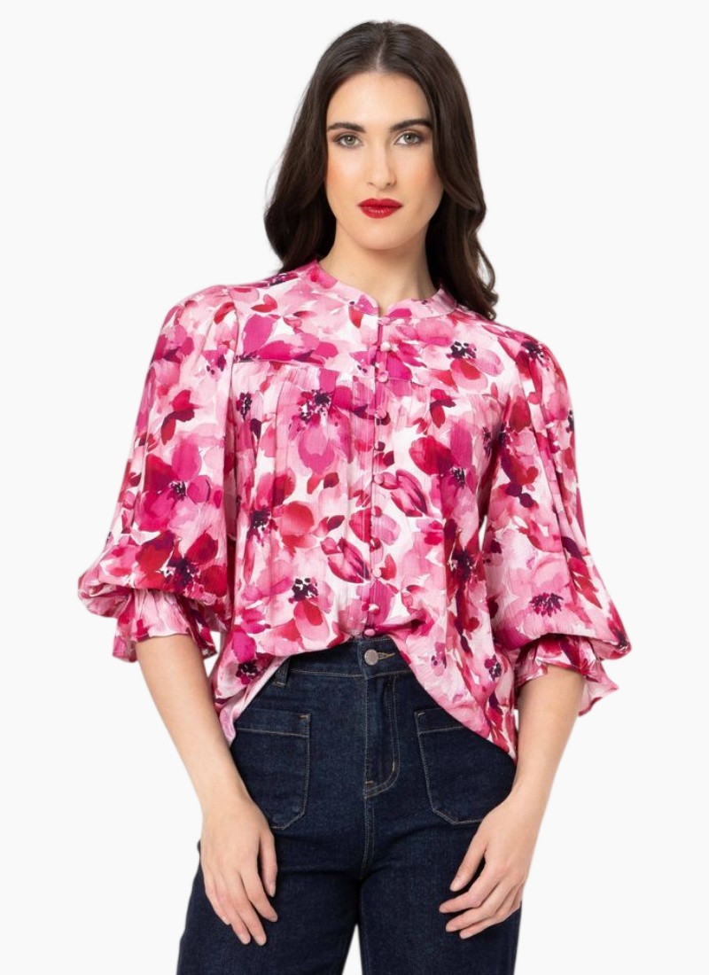 - BLOSSOM SMUDGE from Seeking Lola. This vibrant floral blouse is designed to brighten everyday wardrobe moments with painterly pink blooms.