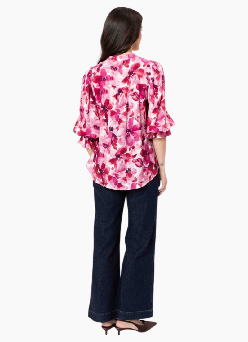 - Easy-care finish keeps the floral blouse looking vivid wear after wear