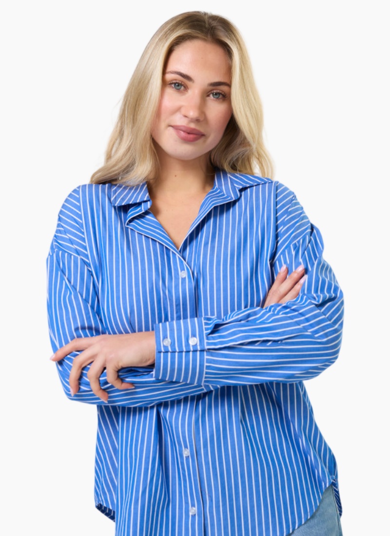 - A Shirts & Blouses staple in a striking blue colour with crisp white stripes, crafted from breathable cotton for all-day comfort