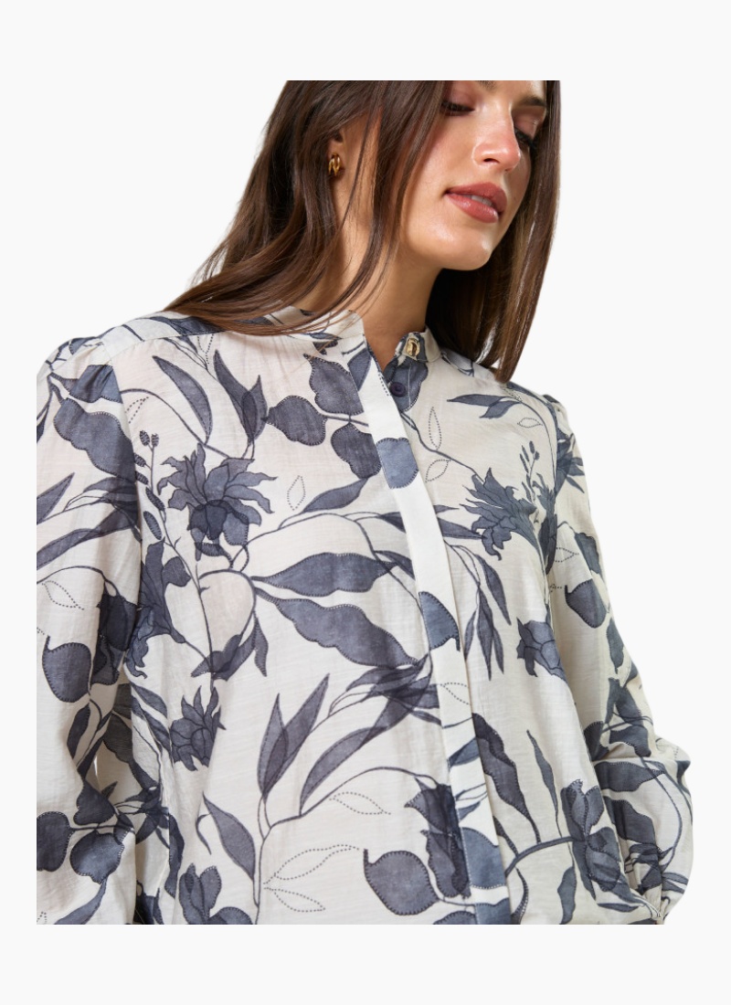 Effortlessly chic, the Faye Blouse features a relaxed silhouette perfect for layering or wearing solo. The distinctive mandarin collar adds understated elegance, while the concealed placket creates a seamless front. Elasticated cuffs ensure a comfortable, adjustable fit throughout the day. A versatile wardrobe essential in a beautiful moonlit stem tone.