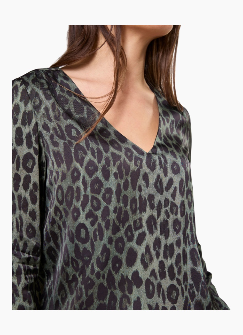 V neck blouse with gathered yoke seam details.