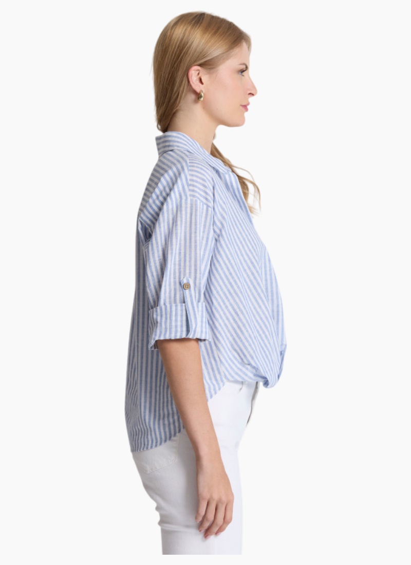 - Stylish button-up design with rolled sleeves for a relaxed look