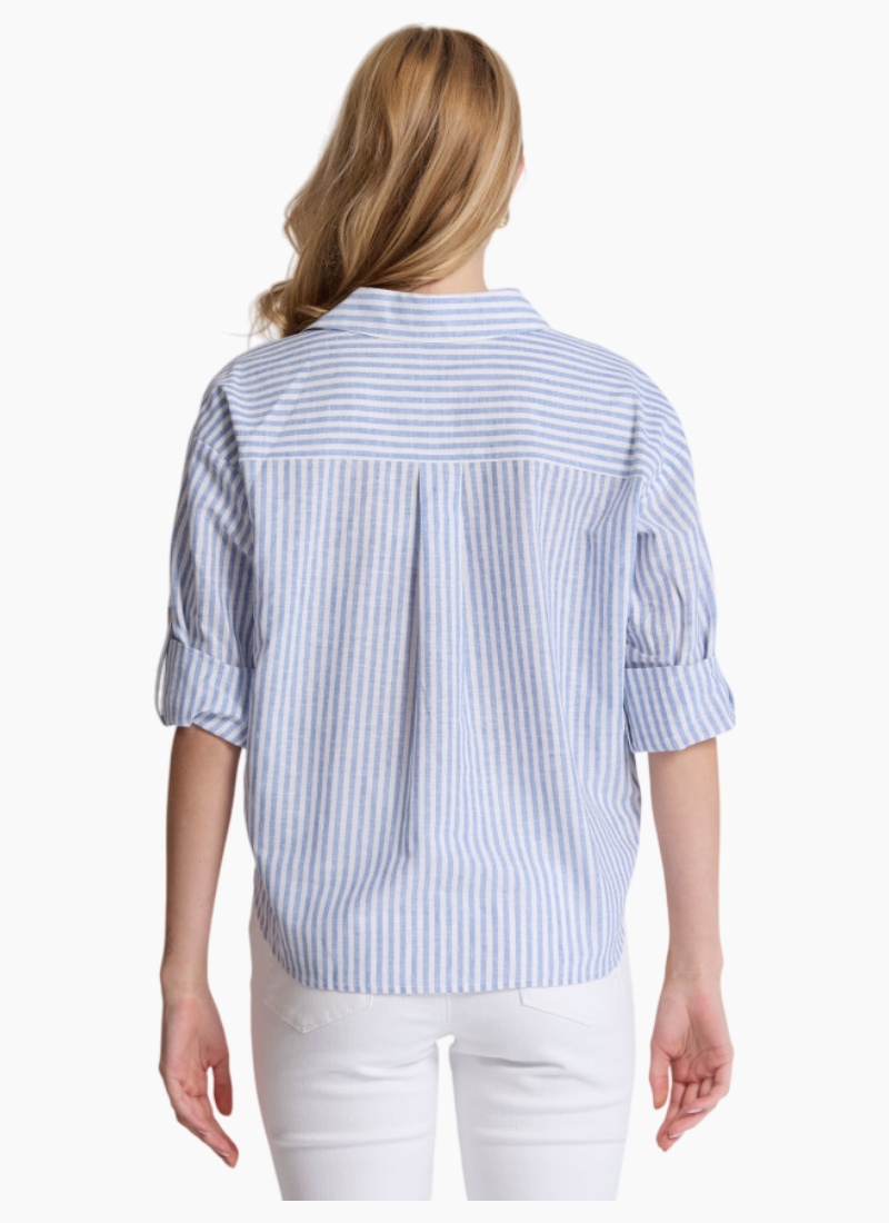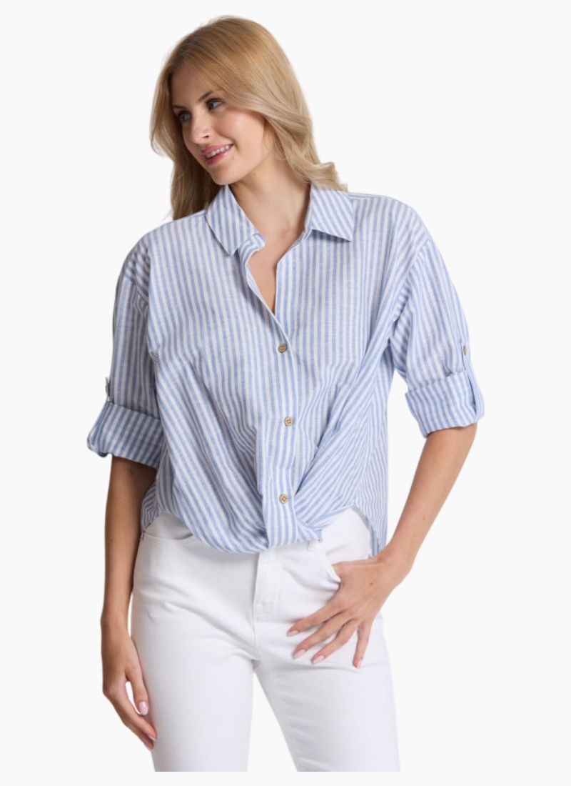 Introducing the On Repeat Blouse Sea Stripe from Stella + Gemma. This charming blouse is perfect for adding a touch of elegance to your everyday wardrobe.