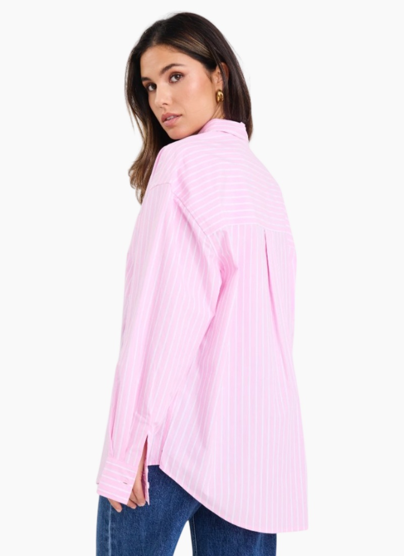 The You Got This Pink Stripe Oversized Boyfriend Shirt is made from cotton poplin with a relaxed oversized cut. It includes a collared neckline, button-down front, chest pocket, and long cuffed sleeves. Style casually with jeans or wear under a blazer.