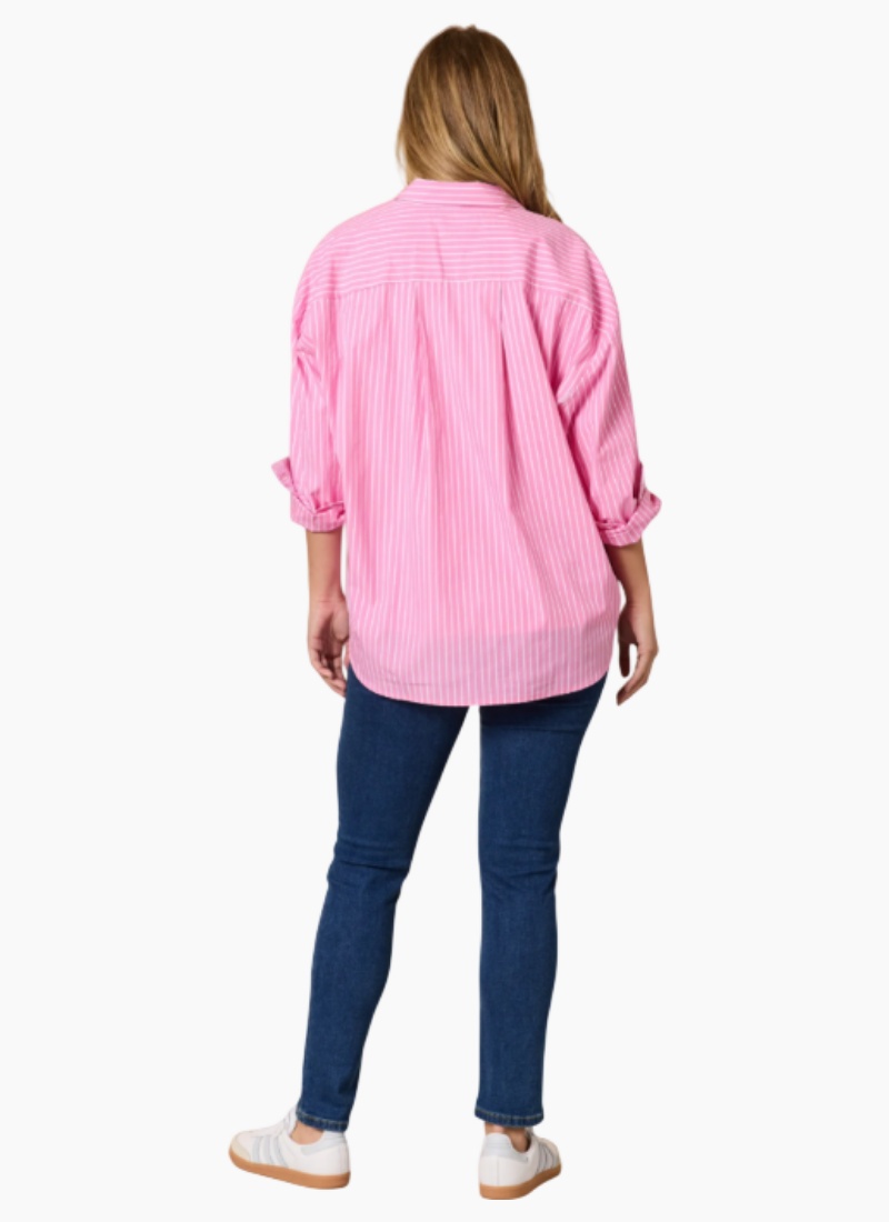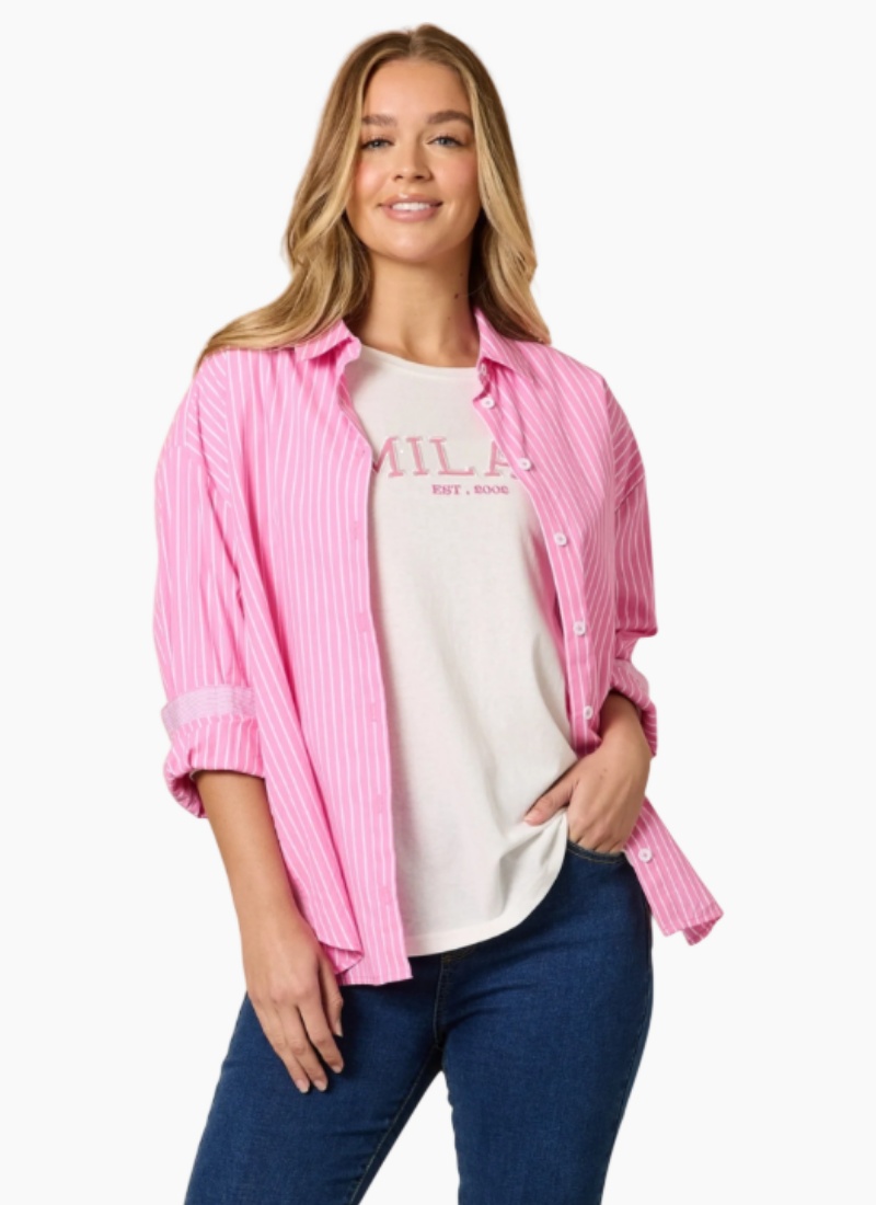 Introducing the Threadz Cabo Stripe Shirt. A breezy pink-striped shirt that adds a playful pop of colour to everyday wardrobes.