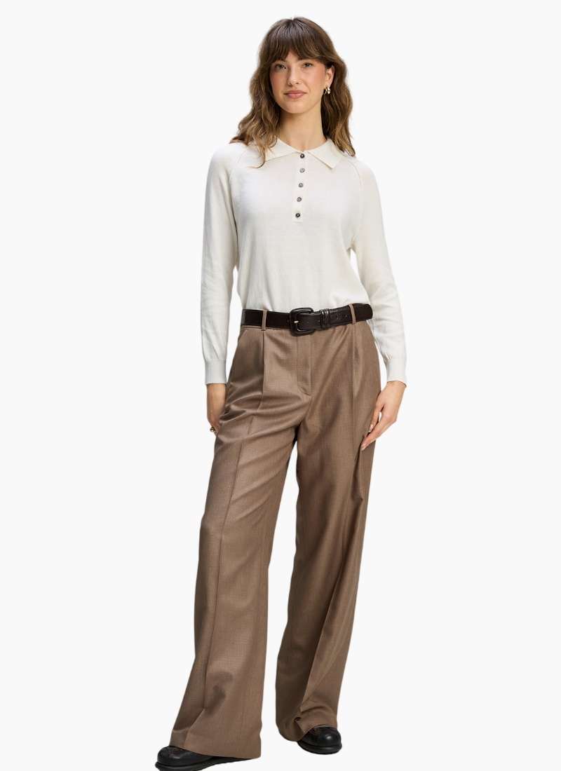- Salt (off-white) hue offers an elegant neutral that layers easily under jackets or with trousers