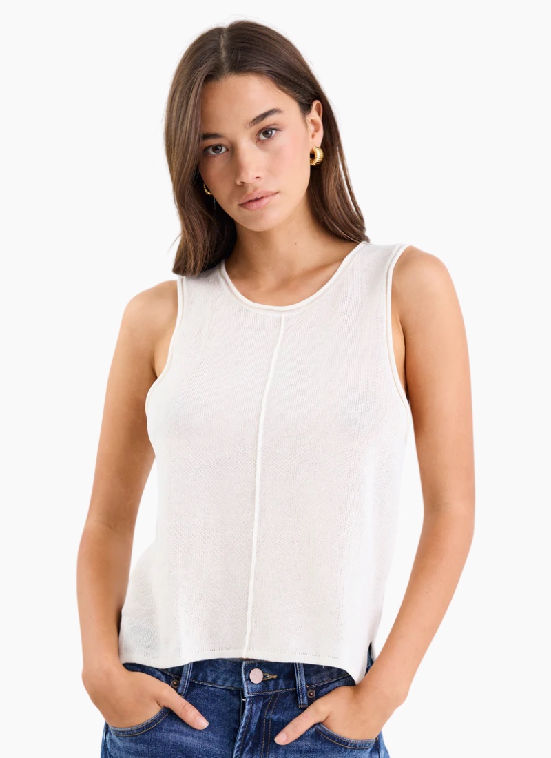 Introducing the Nomad Ivory Lightweight Knit Tank Top from Among The Brave. This versatile ivory knit tank offers breathable comfort and effortless everyday style.
