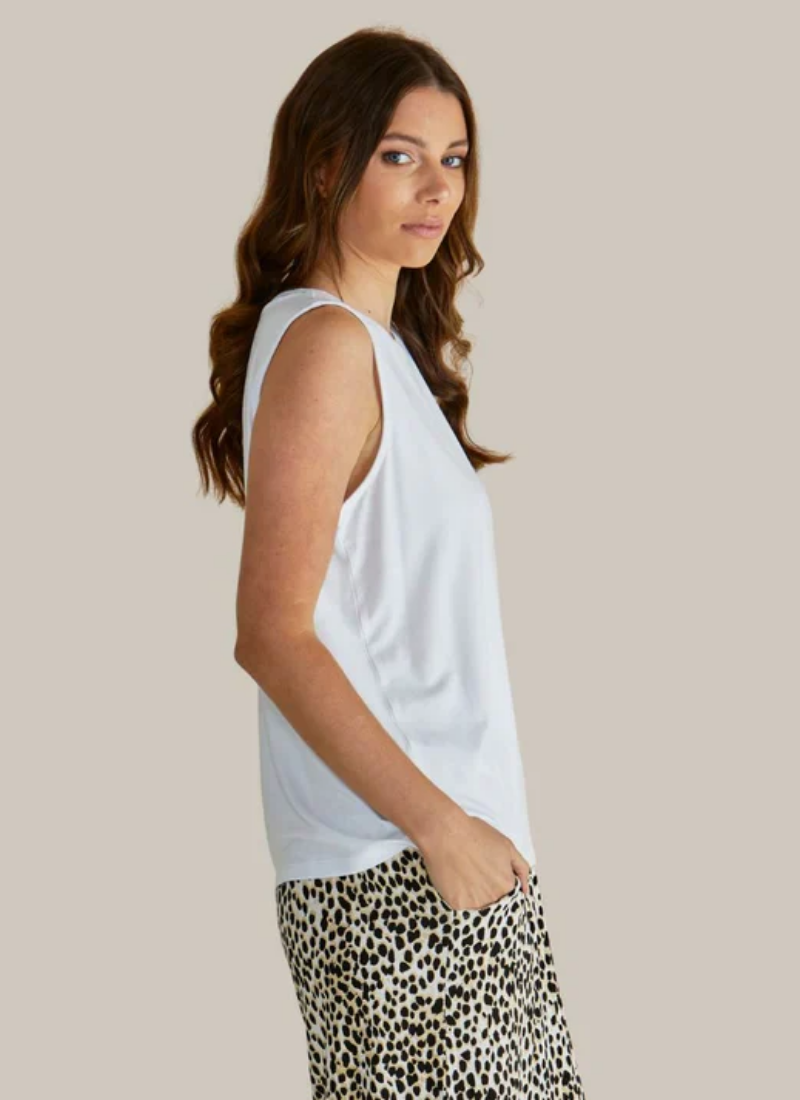 Slip into effortless style with the Betty Basics Positano Tank in Black. Crafted from a luxurious viscose-elastane blend, this everyday essential delivers a silky-smooth feel and gentle stretch that hugs your curves just right. The fluid drape moves with you, making it perfect for lounging, layering, or going solo. Comfort meets versatility in this wardrobe staple that's as easy to wear as it is chic.Cool Gentle Machine wash Relaxed Fit Model Sarah is 178cm tall and wears a size 8