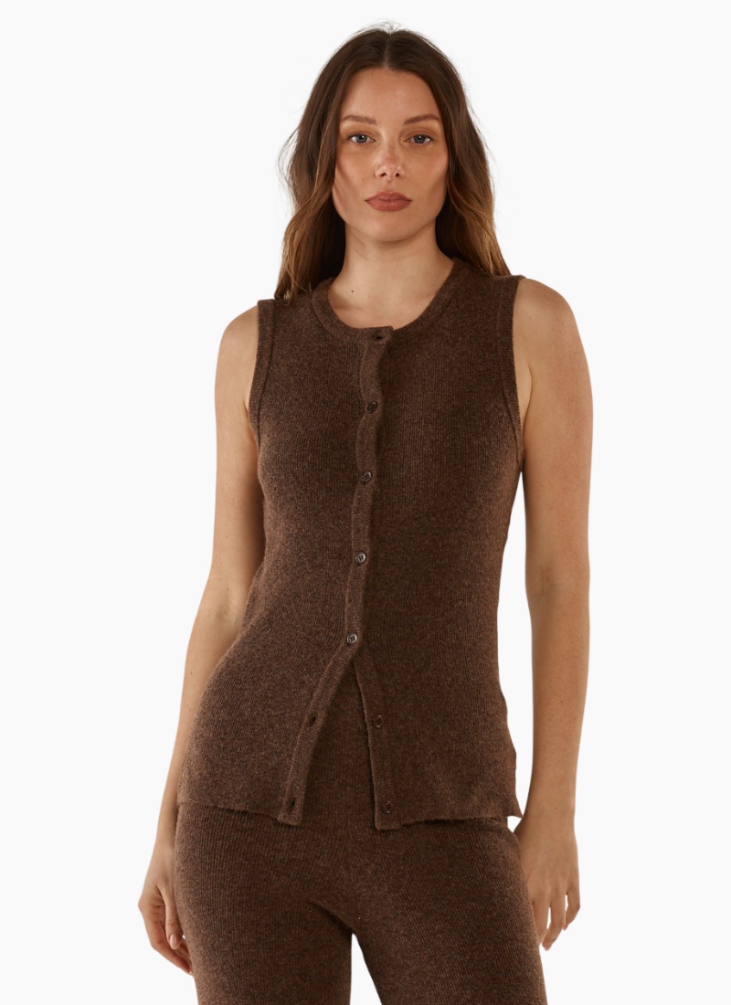 The Shona Knit Vest is an elevated layering piece with a relaxed silhouette. Made from a cosy knit feel, it features a sleeveless design with classic ribbed trims. Comfortable and easy to style over shirts or tees. A transeasonal essential for effortless layering.