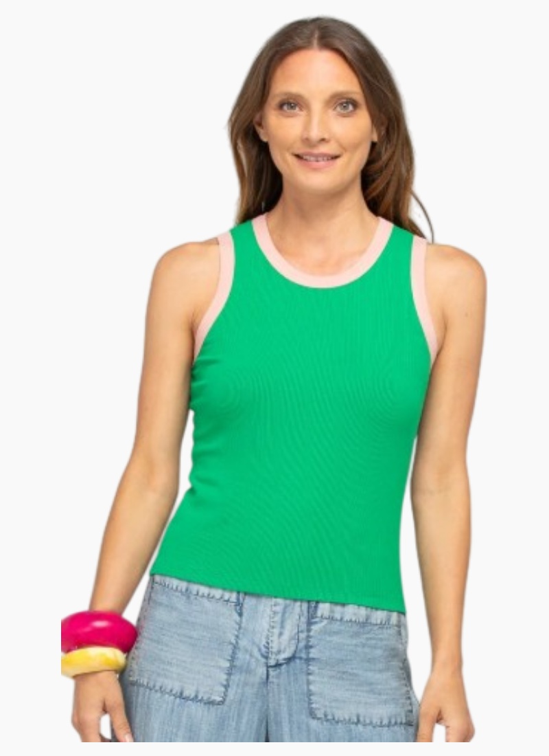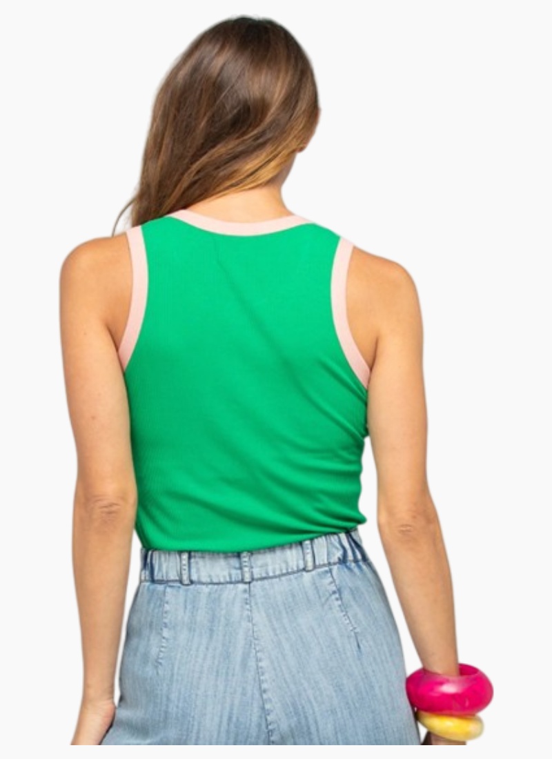 The Boom Shankar Bellissimo Tank Top is a classic rib knit singlet that will elevate your look.95% rayon, 5% spandex, ribbed fabric with contrast trim, fits close to the body. Fit notes: True to size, fitted tank.