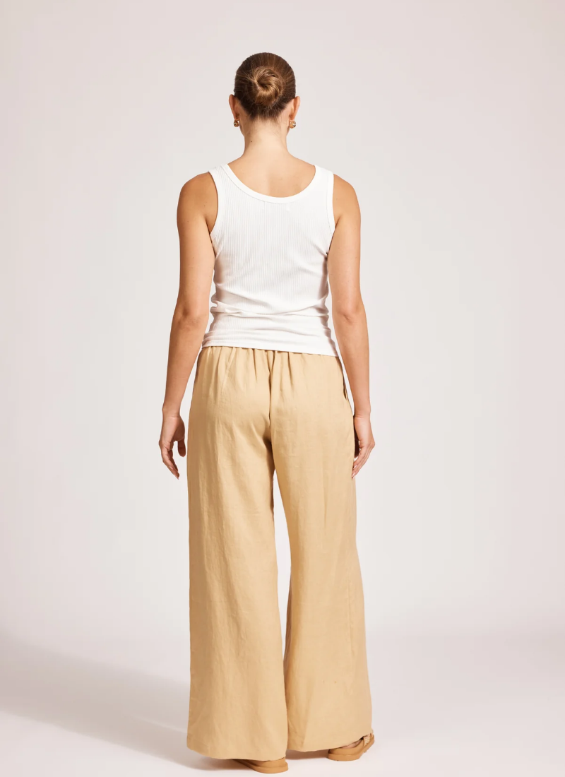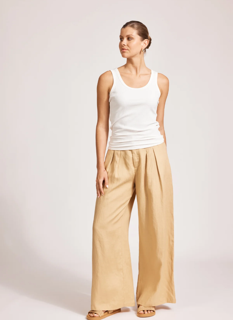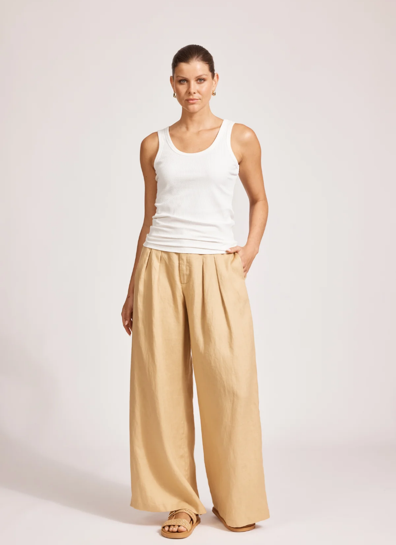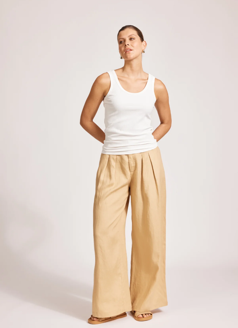 This tank features a flattering scoop neckline and a sleeveless design, crafted from soft ribbed fabric for added texture. A subtle brand logo is placed at the back of the neck, and the cotton-rich material ensures comfortable wear throughout the day