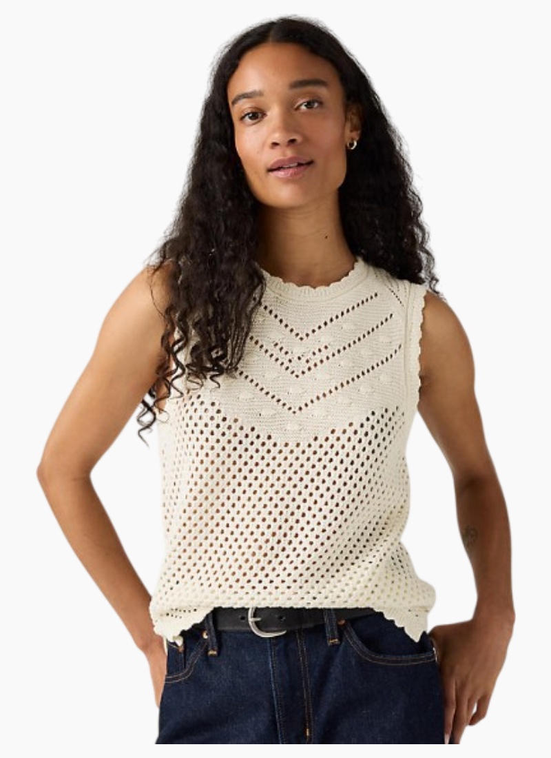 Introducing the Adrienne Tank from Levis. A delicate open-knit tank that brings relaxed, modern charm to your wardrobe.