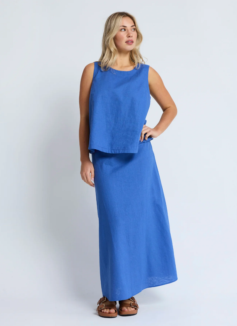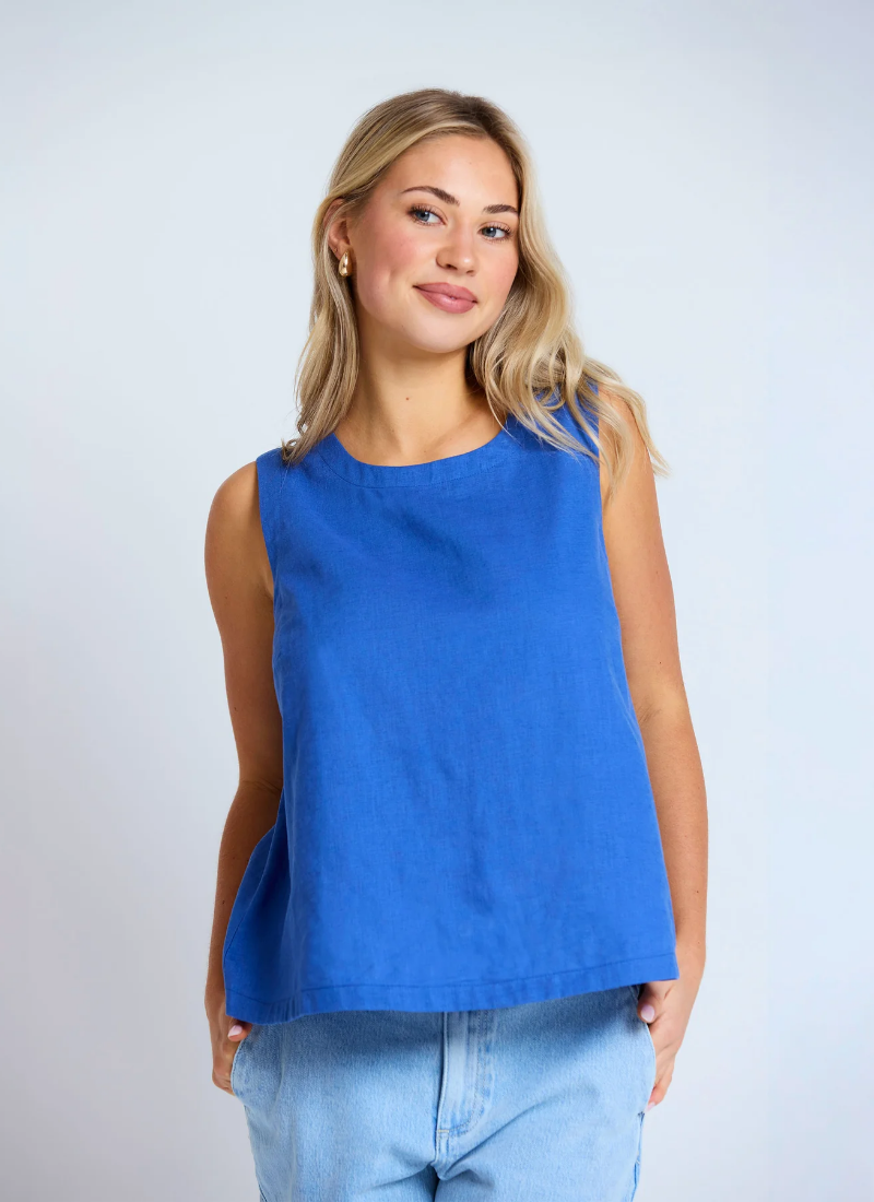 This playful Cornflour blue tank from Stella + Gemma is your new go-to for effortless style. With a flattering round neckline and a shorter length, it pairs perfectly with skirts. Match it with the Casey skirt for an easy, chic outfit that’s ready to brighten your day.Sleeveless A line tank with contrast button placket fastening at centre back neck