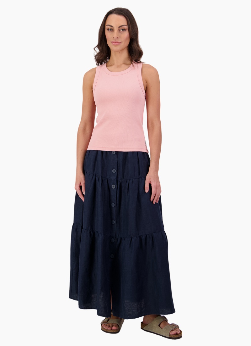 The Daisy singlet is the staple you need to compliment the new additions to our women's range. Made with cotton elastane rib for comfort and fit.98% cotton, 2% elastane, 320gsm Racer back Flattering slim fit Wide rib binding