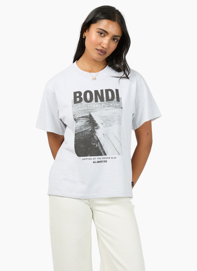 Introducing the Bondi Tee from All About Eve. This relaxed graphic T-shirt channels effortless beachside style into a versatile everyday favourite.