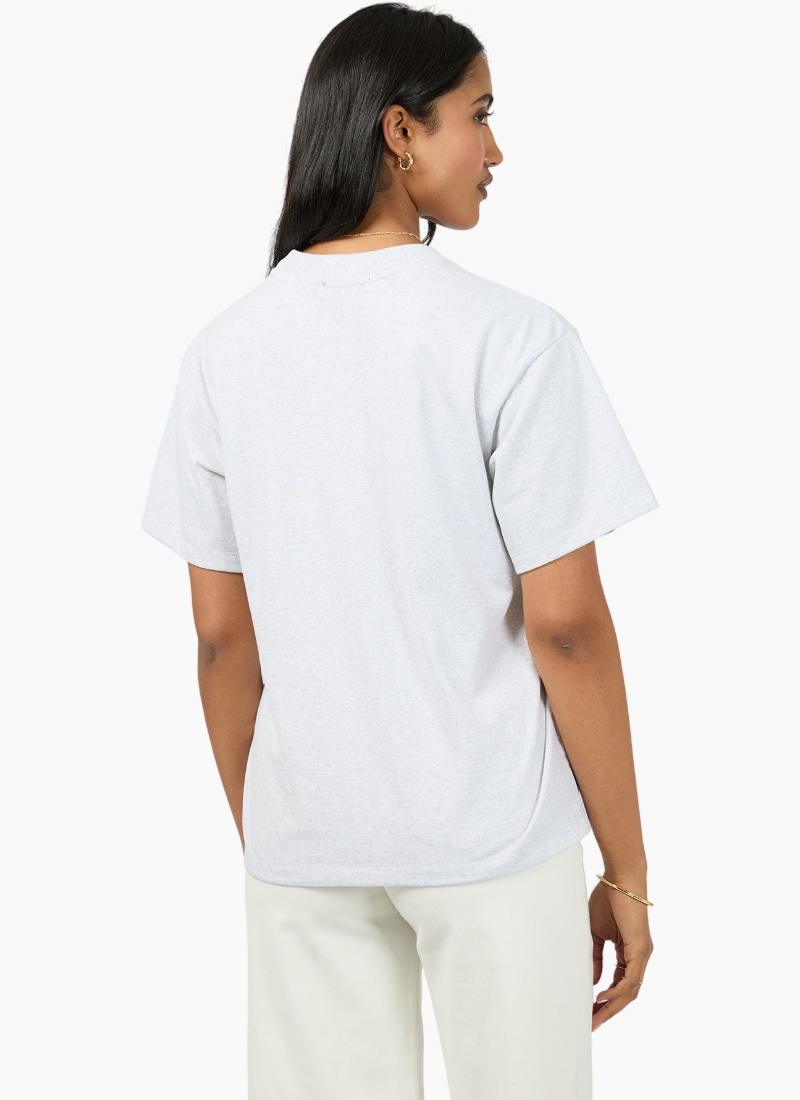 - Classic crew neck and short sleeves create a timeless Tees silhouette in a light grey colour
