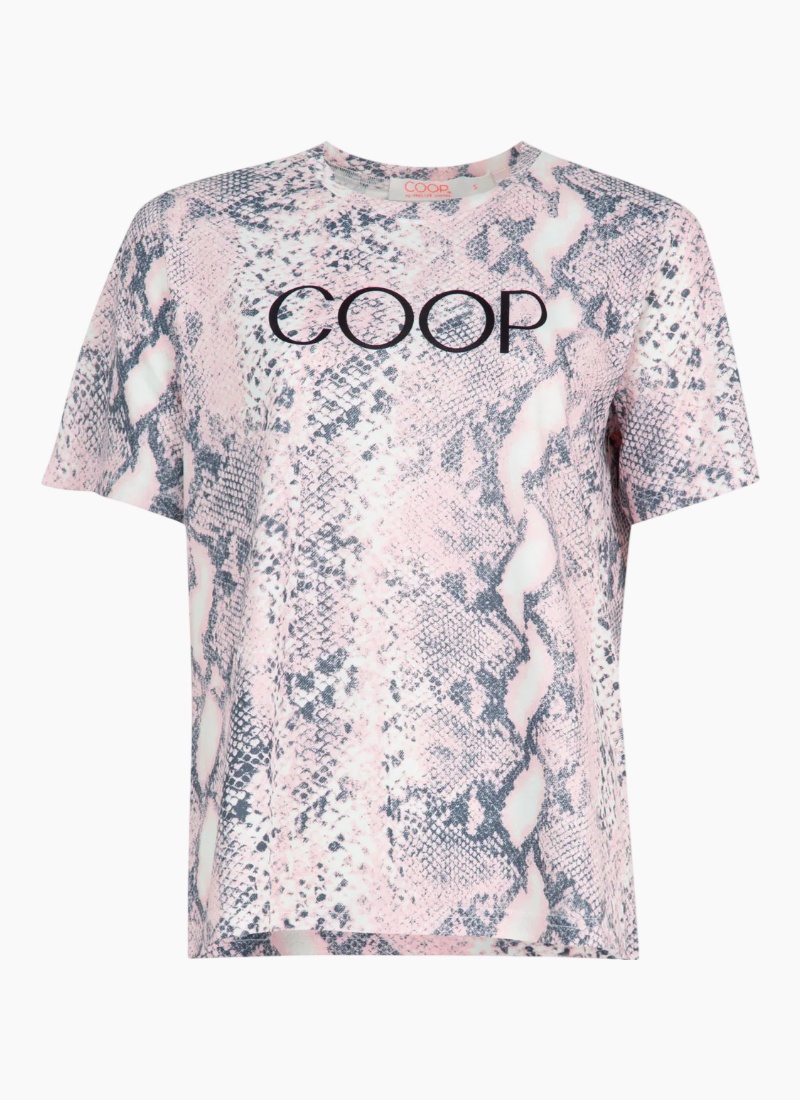 Introducing the SERPENT CHIC T-Shirt - Pink from COOP. This signature tee pairs a subtle snake print with the COOP logo for an elevated everyday essential.