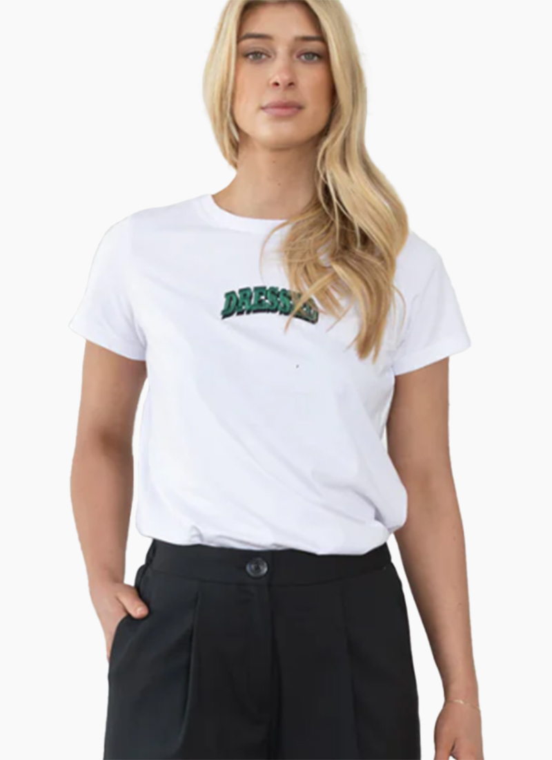 This classic Dressed t-shirt is a relaxed fit with a crew neck, and features a two-toned pink and burgundy embroidered logo in a varsity style font on the centre front. Pair with your favourite denim for a cool casual look.Mid weight 180GSM,