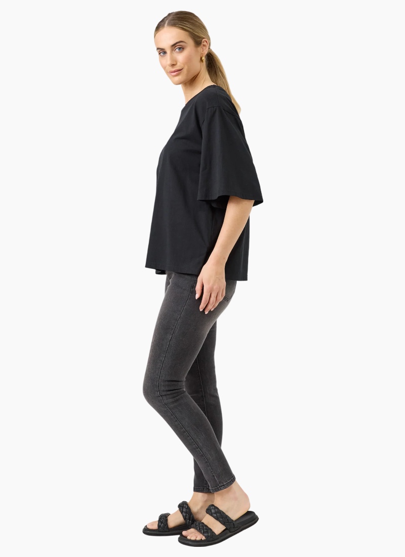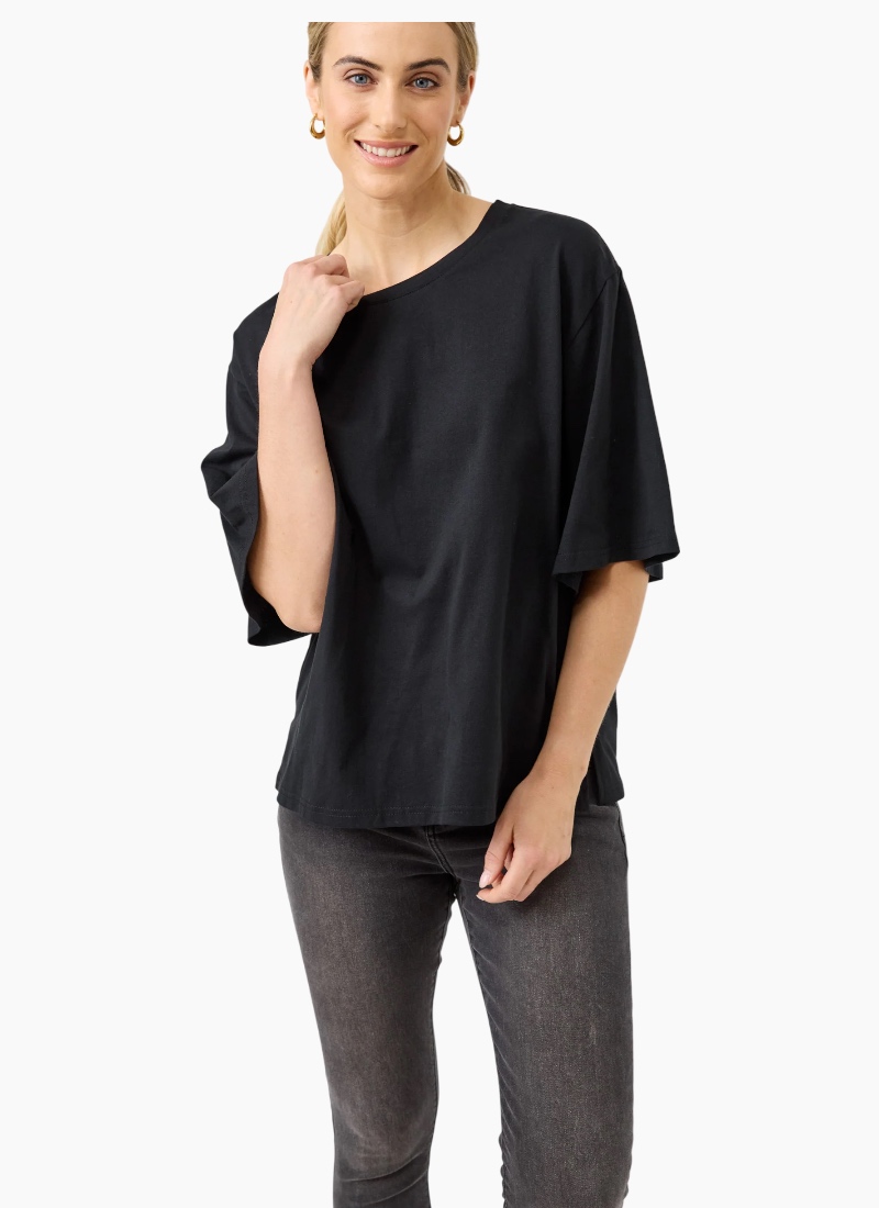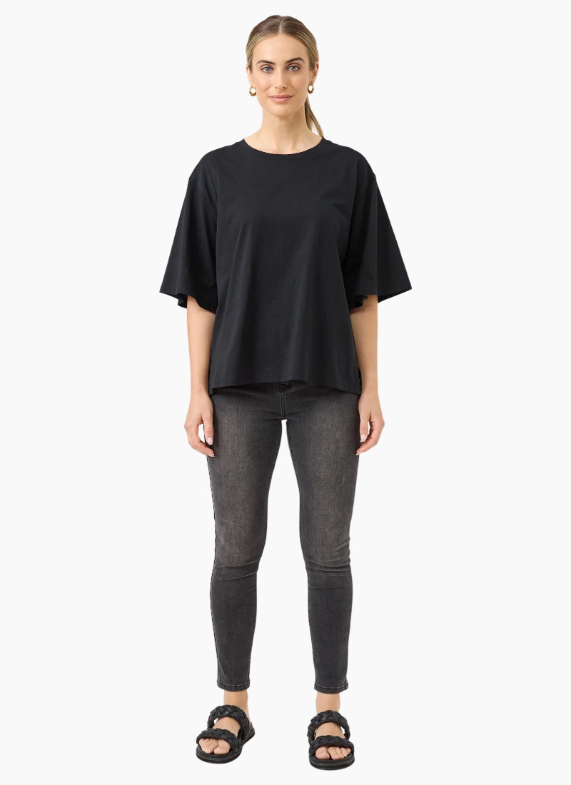 An elevated take on the everyday tee. Crafted from 100% cotton for softness and breathability. Features a round neckline, drop shoulders, and elbow-length sleeves. Designed in a boxy silhouette with a straight hem and small side splits for ease of movement.Round neck Drop shoulder Elbow-length sleeves Hip-length Side vents Boxy fit 100% Cotton
