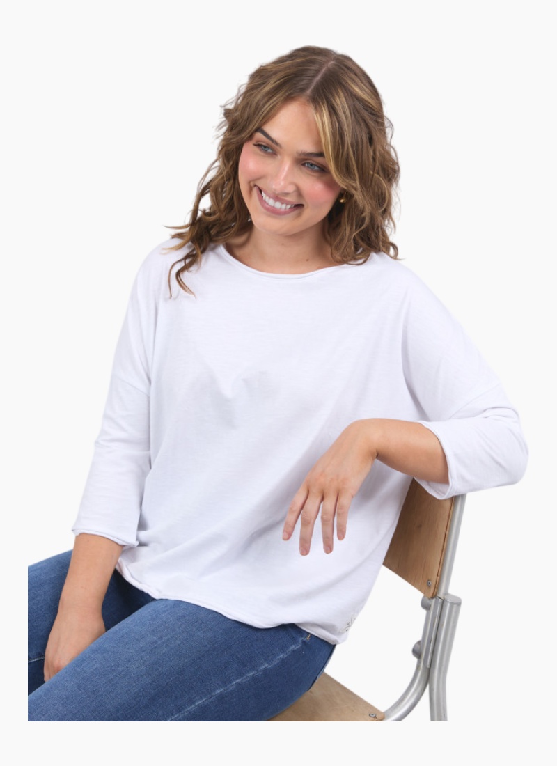 Introducing the Anya L/S Tee from Elm. This versatile piece is perfect for layering or wearing on its own for a casual yet chic look.
