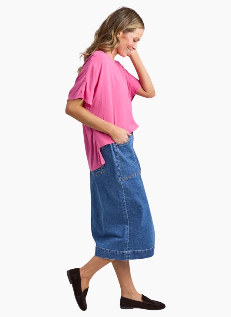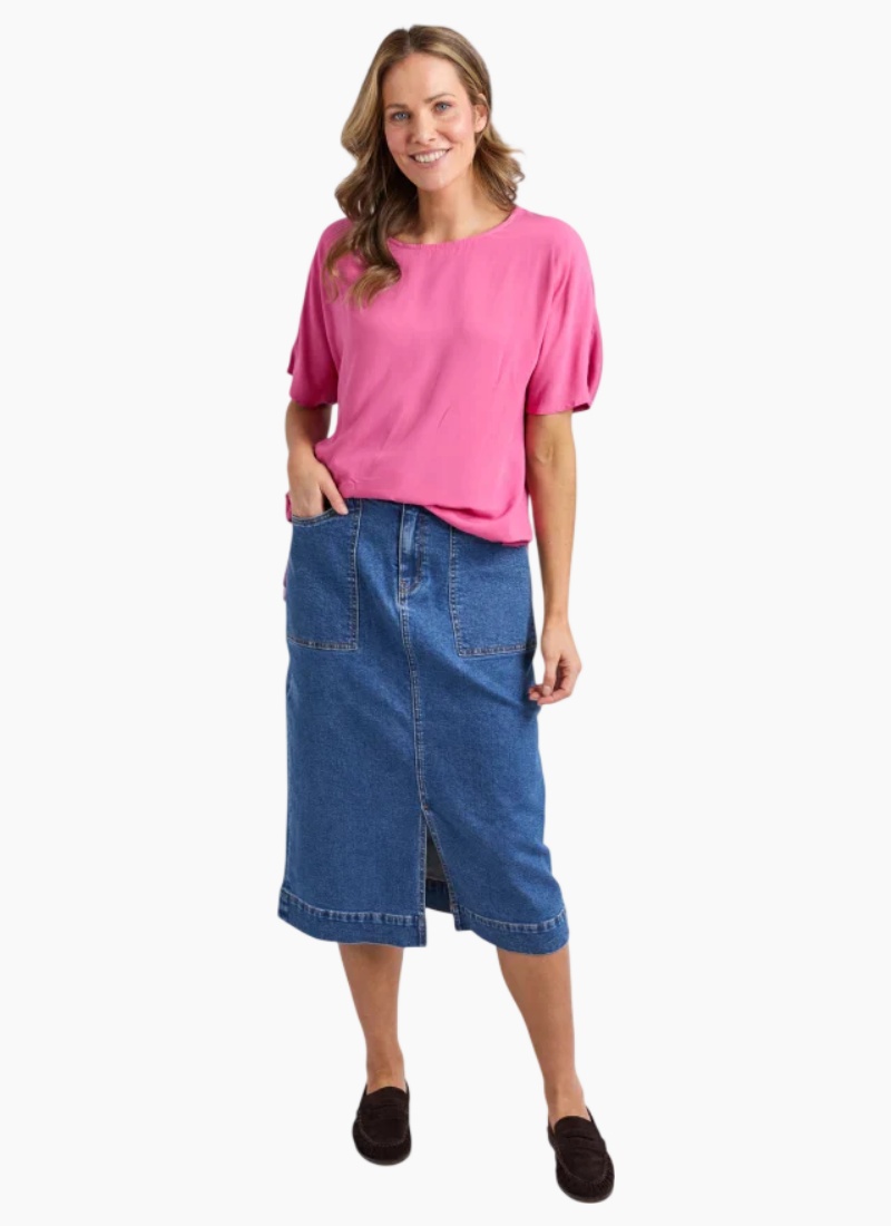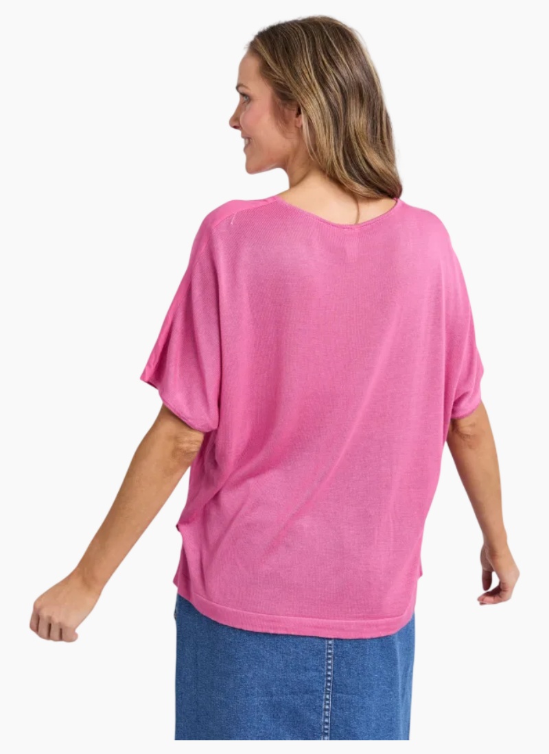 The Elm Chantelle Top is a best-selling favourite designed for effortless everyday wear. Featuring a woven front, soft knit back and oversized fit, this top drapes beautifully for comfort and style. Pair with slim or straight-leg pants to balance the relaxed silhouette. Best selling shape Soft fabric Oversized fit 100% viscose Our size 10 model is 173cm tall