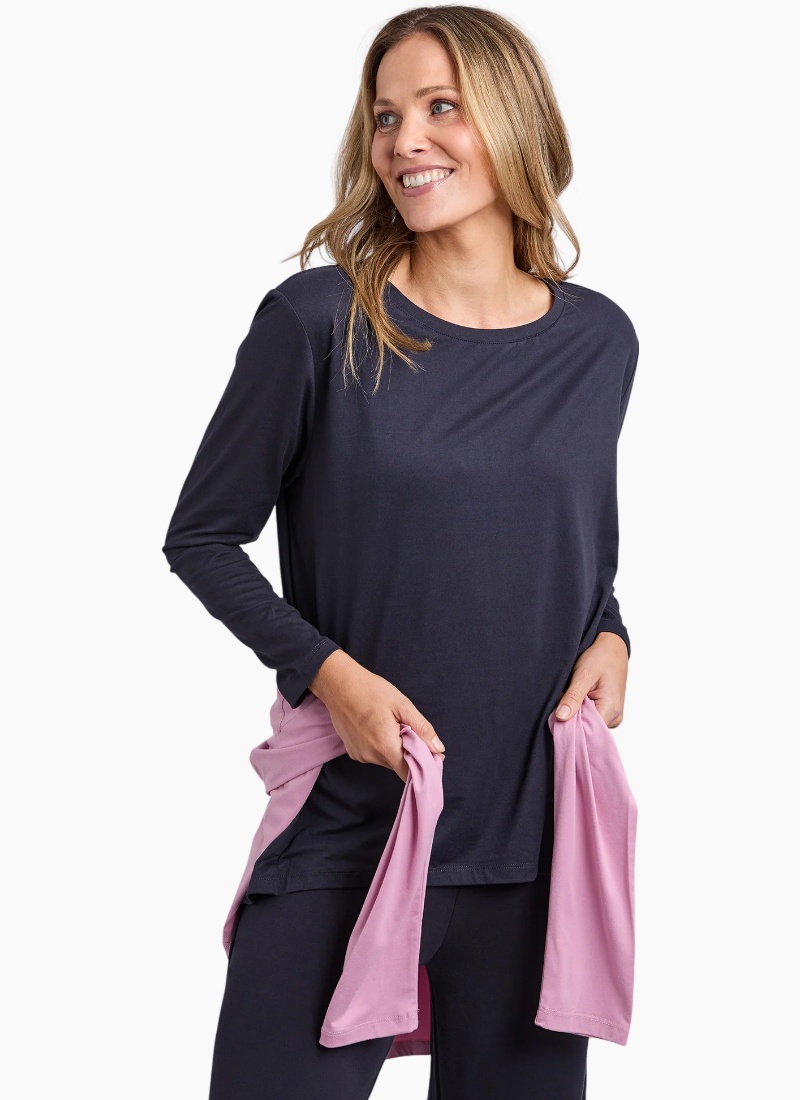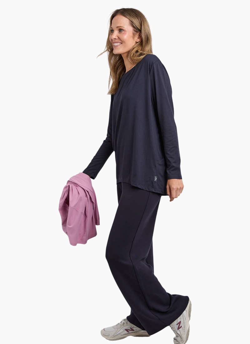 Introducing the Freedom Long Sleeve from Elm. This versatile navy top is a refined everyday piece in the Tops collection, crafted from a soft cotton blend for breathable, all-day comfort.