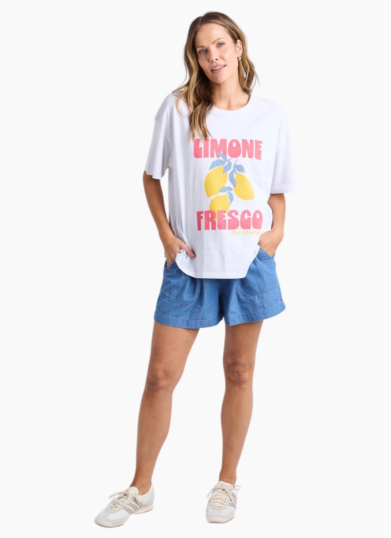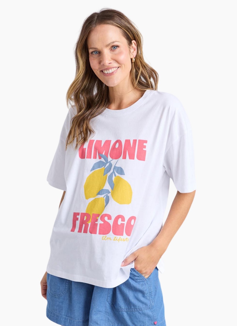 Featuring an exclusive Elm Design graphic, the Limone Fresco Tee is a classic block shape with a round crew neckline, small side splits and made from 100% cotton.Loose fit Side splits at hem Exclusive artwork