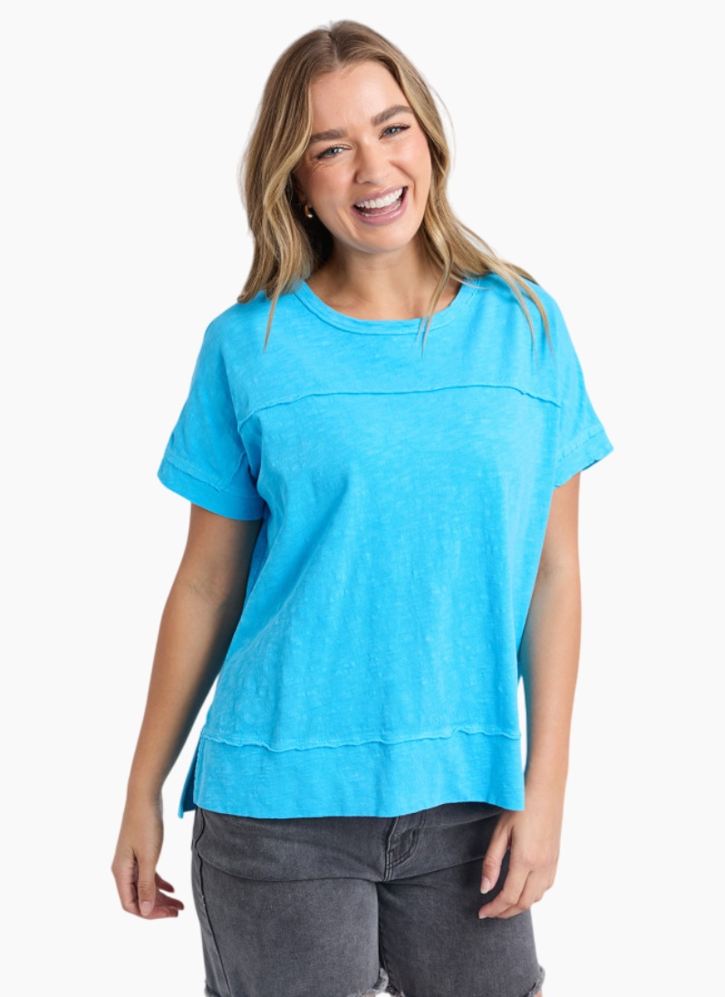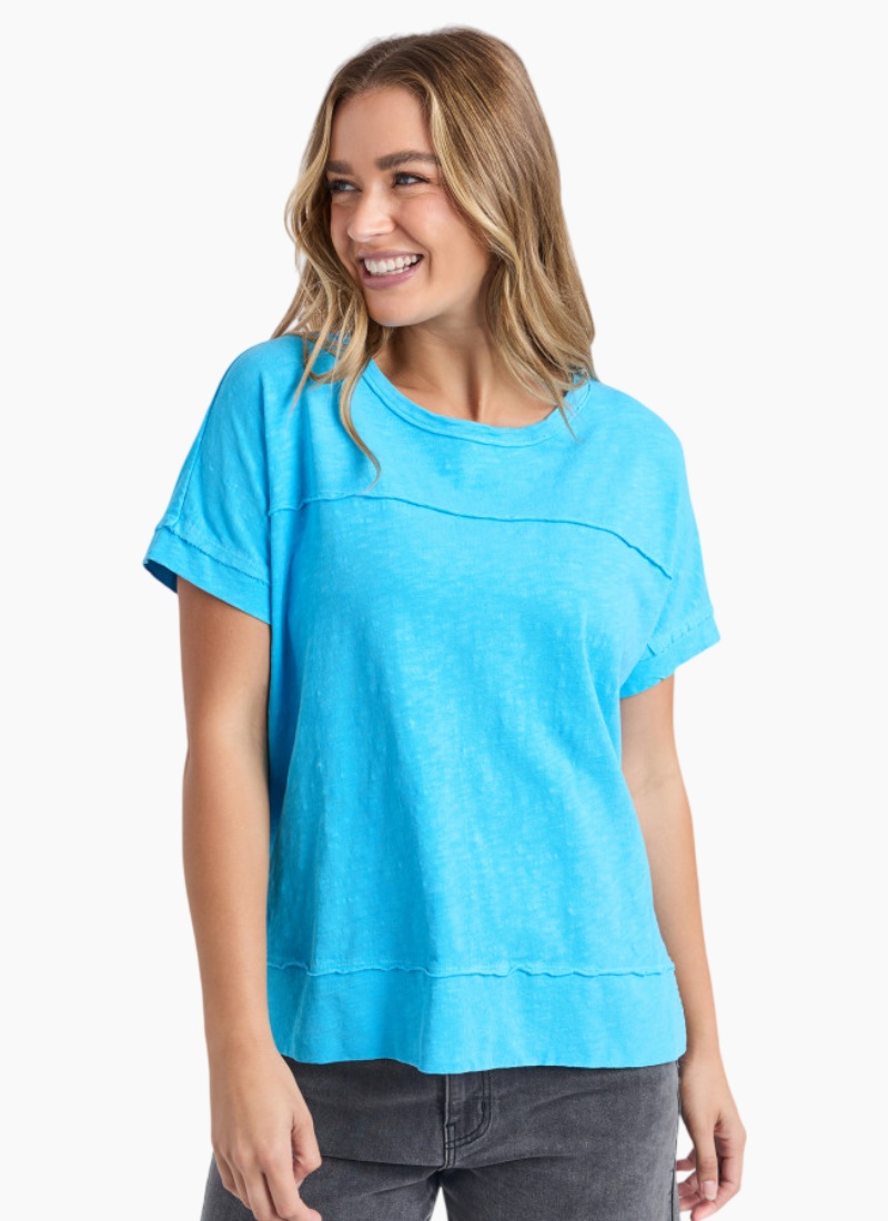 Introducing the Allison Tee from Foxwood. A breezy, everyday tee in a vivid turquoise that lifts casual wardrobes.