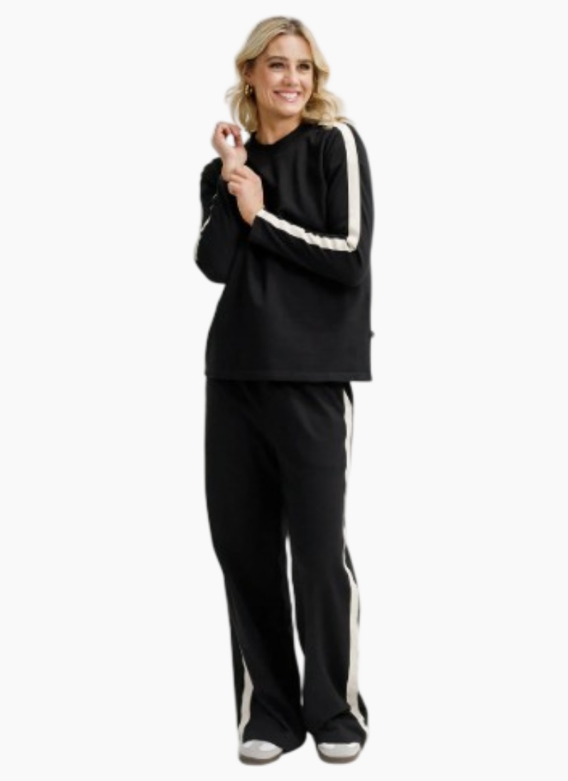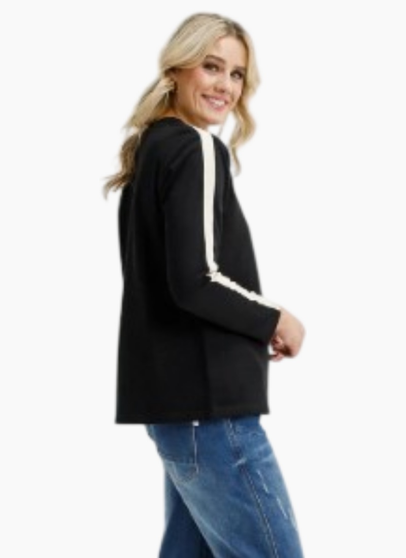 • Classic black with a contrasting sand stripe down the sleeve for a sporty-chic finish