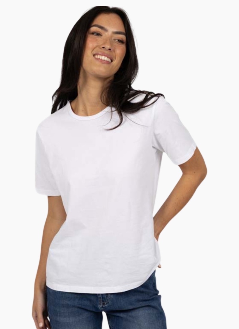 An easy wear basic, whatever the weather. Crafted from midweight, 100% cotton this tee is so soft and breathable you’ll want one! Pair with jeans for a go-to classic look, or wear as a base layer under a jacket or cardi. A must have, super soft basic tee. Classic round neck with a boxy, relaxed fit. Slight drop shoulder. Longer design - will sit at base of hip.