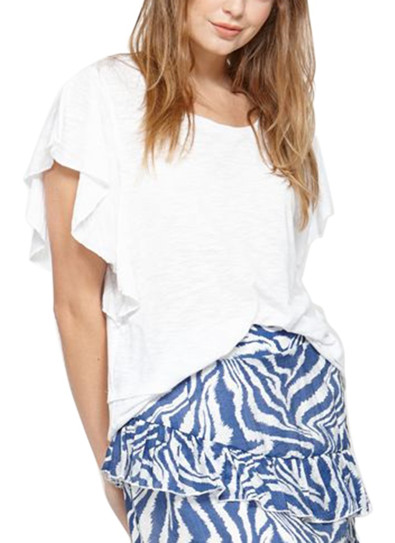 Worn by netball and volleyball super-star and former member of the New Zealand Silver Ferns Netball Team, ANNA HARRISON. The Love Top is a twist on the classic knit tee. With feminine ruffle sleeves and hem panel detail it's chic and comfy.