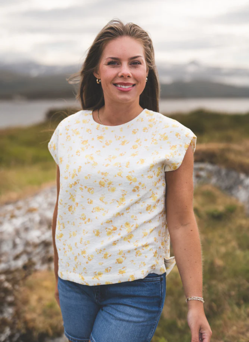Falisha is a textured material in a floral print. This top has a sleeveless design with a wide shoulder and a boxy fit. It's the essence of summer. Style it with the matching pants.Reviews