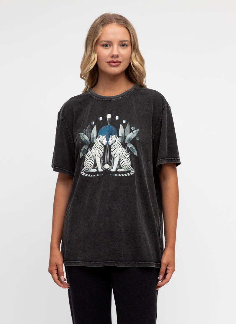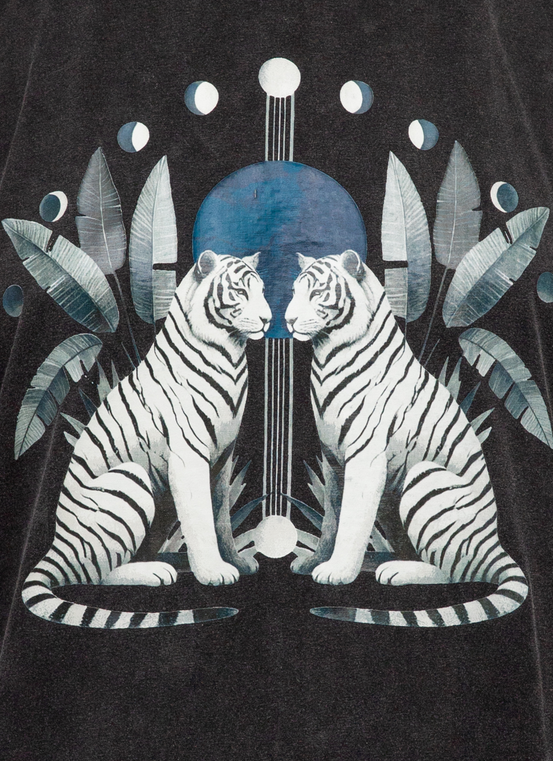 - Vintage-wash charcoal colour with a mirrored tiger moon graphic for a distinctive statement
