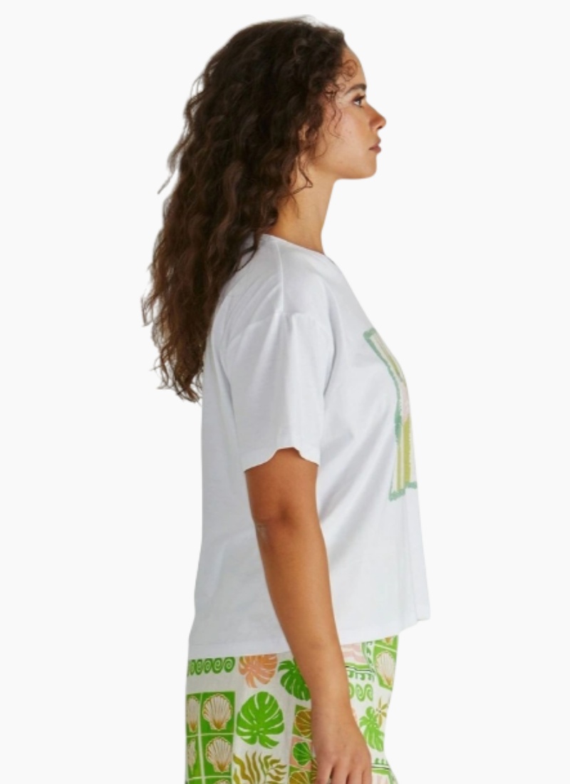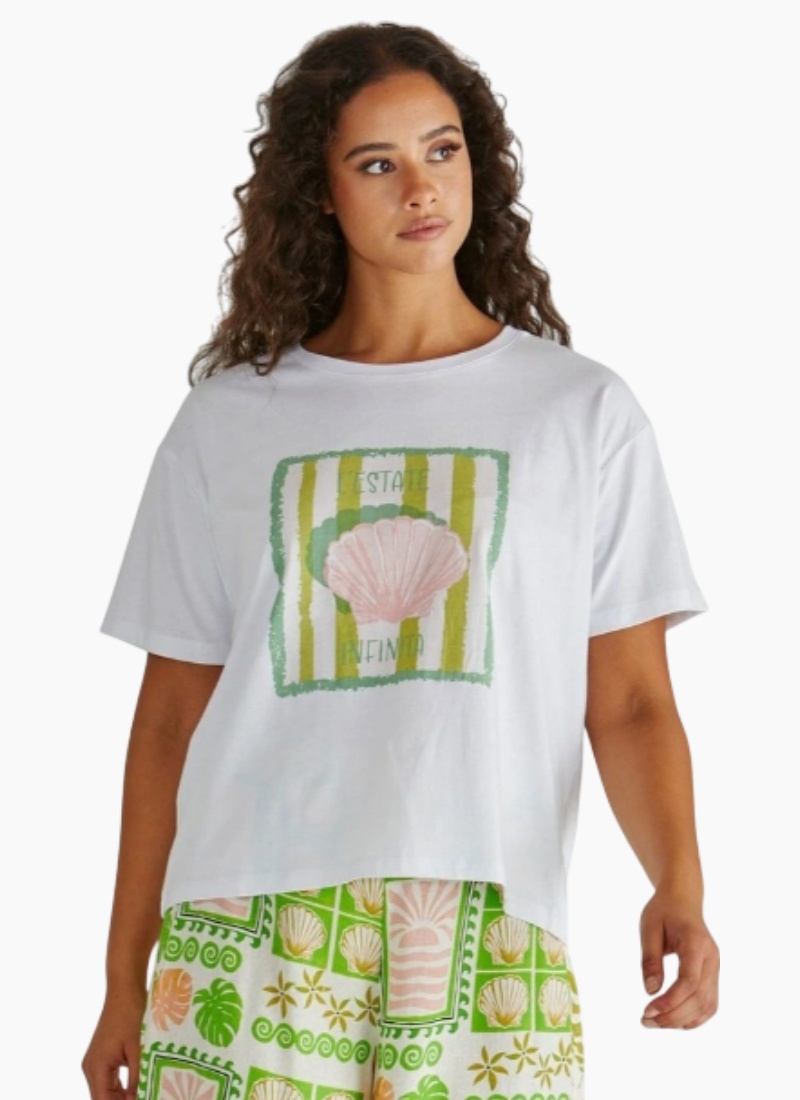 Introducing the CYNTHIA TEE from SASS. A breezy white graphic tee that brings playful seaside charm to everyday dressing.