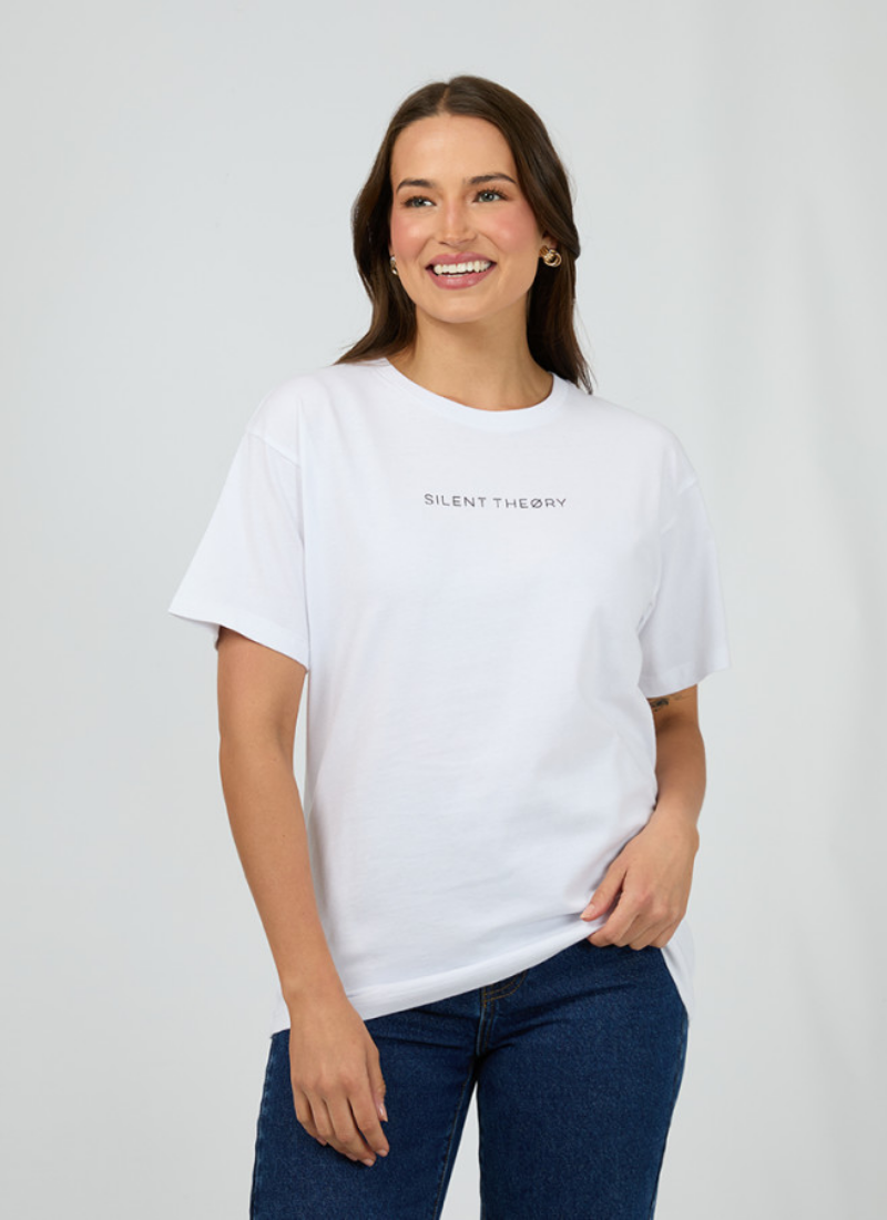 Elevate your spring summer wardrobe with our Logo Tee. Crafted from a heavy weight cotton jersey, this tee features a tie detail, logo print and soft wash look. Pair back with your favourite Silent Theory denim and some sneakers for the easiest on the go look.