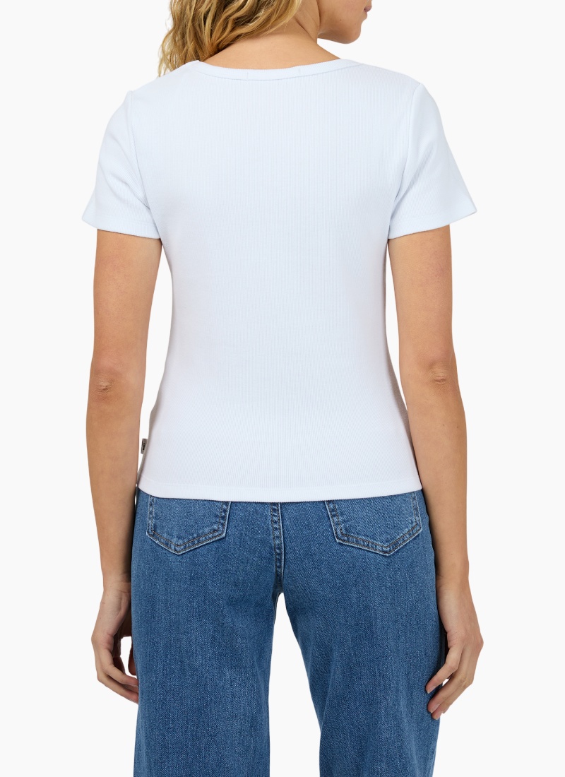 Introducing the Mia Tee. The perfect addition to your capsule wardrobe. Featuring a scoop neckline, this top offers both style and comfort. Elevate your look with this tee that is perfect for layering, it will be your favourite staple piece! Available in multiple colour ways.Scoop neckline Short sleeves 95% Cotton, 5% Elastane Model is wearing a size 8