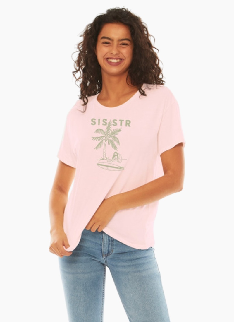 Introducing the Lay Day pink tee from Sisstrevolution. This easy-going staple brings soft colour and beachy graphics to your everyday wardrobe.